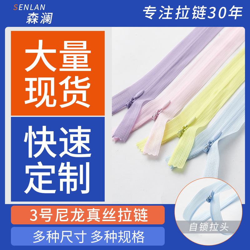 3号ナイロンレースステルスファスナーワンピース抱き枕閉尾チェーン多色スポットメーカー卸売り