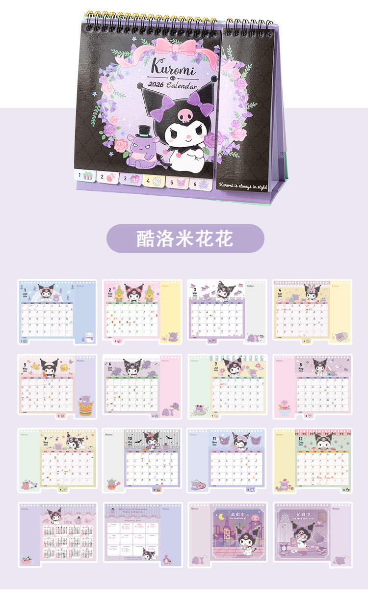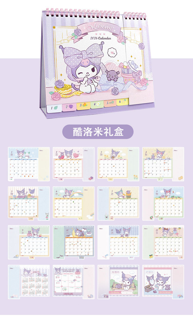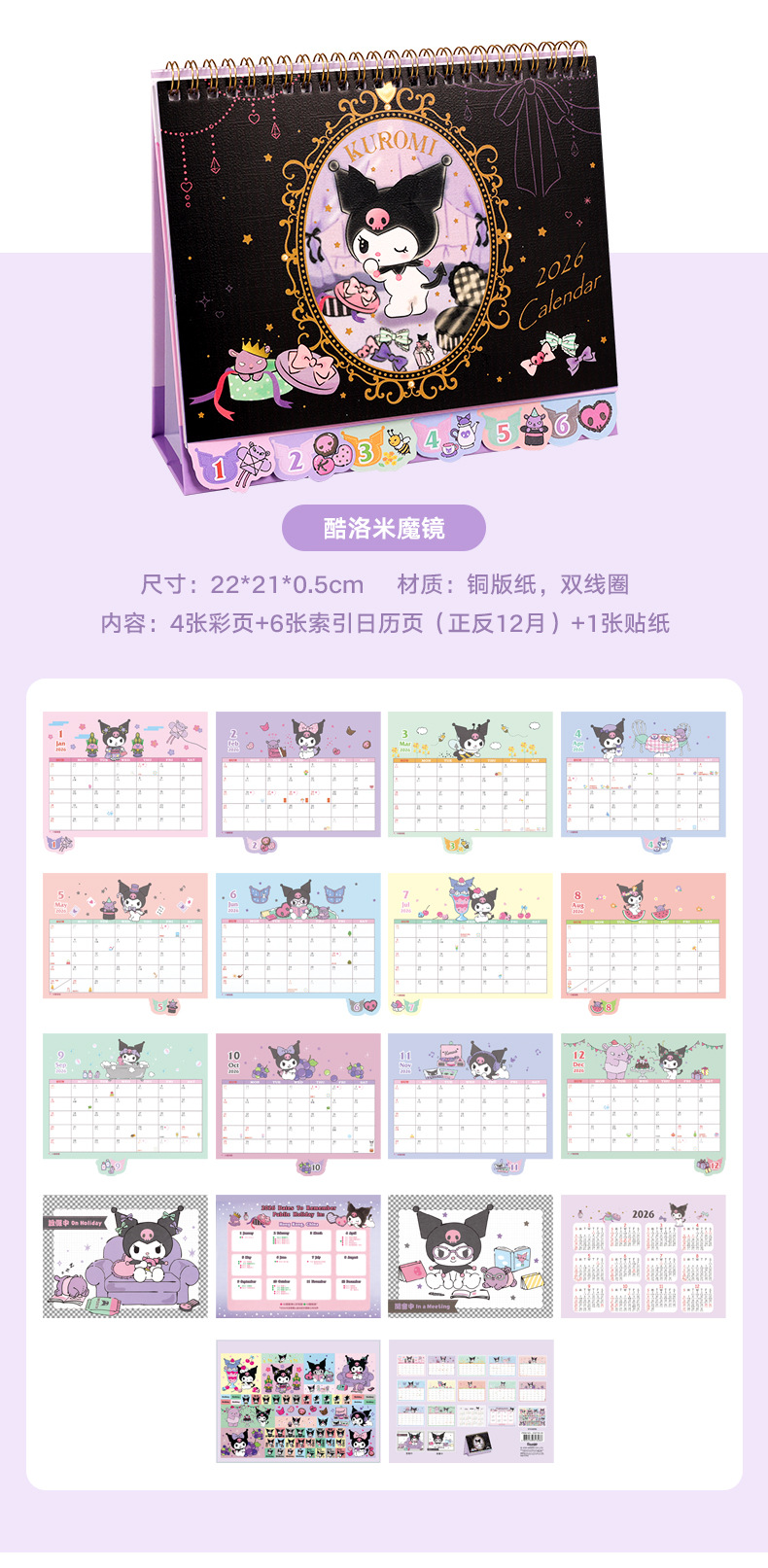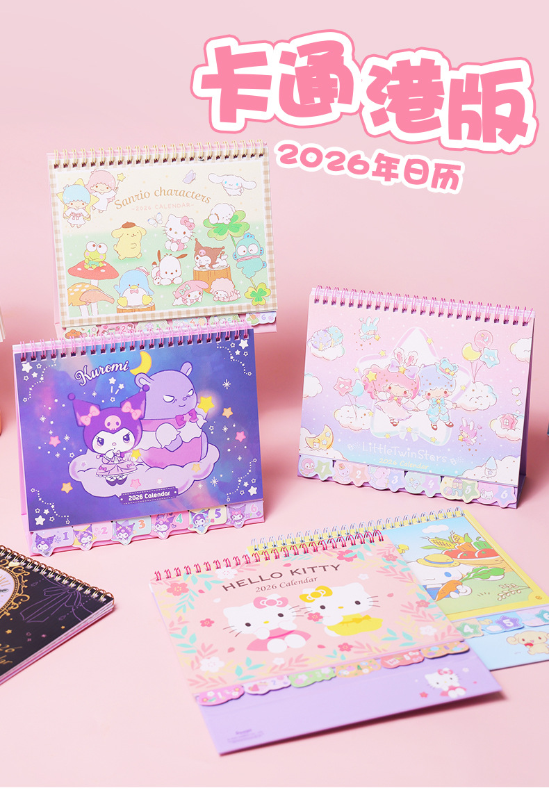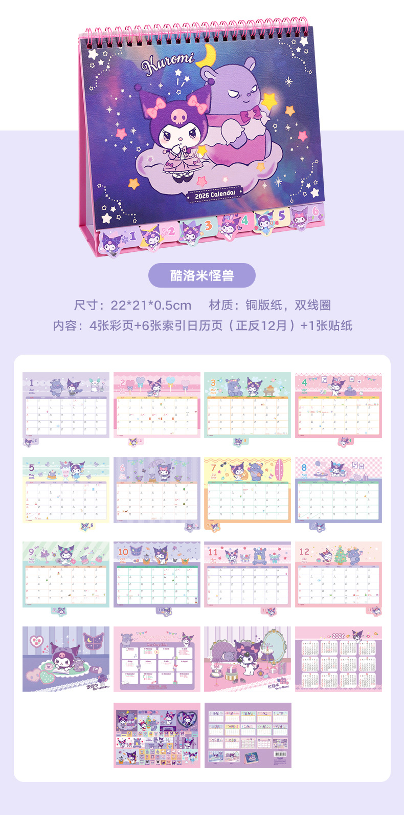 【香港休日カレンダー】2026年新作サンリオ卓上カレンダー学生・オフィス用クロミ月間カレンダー