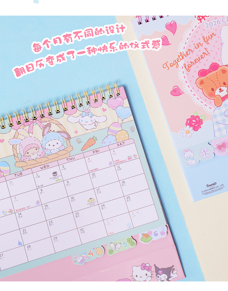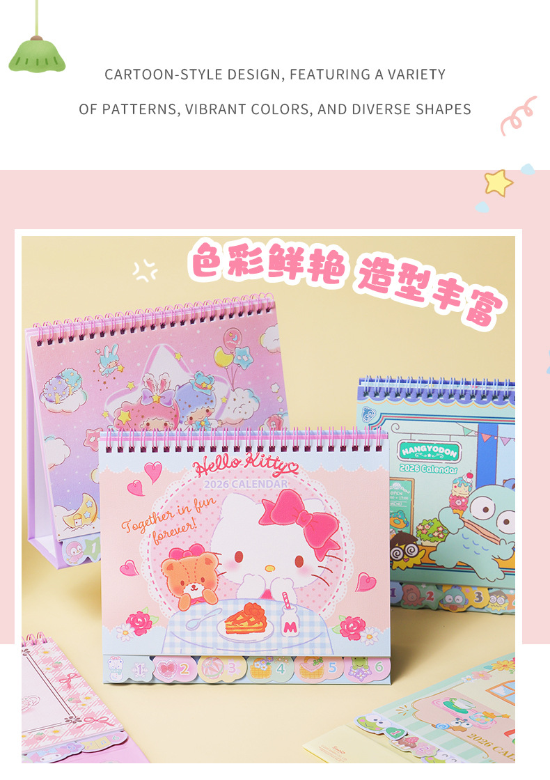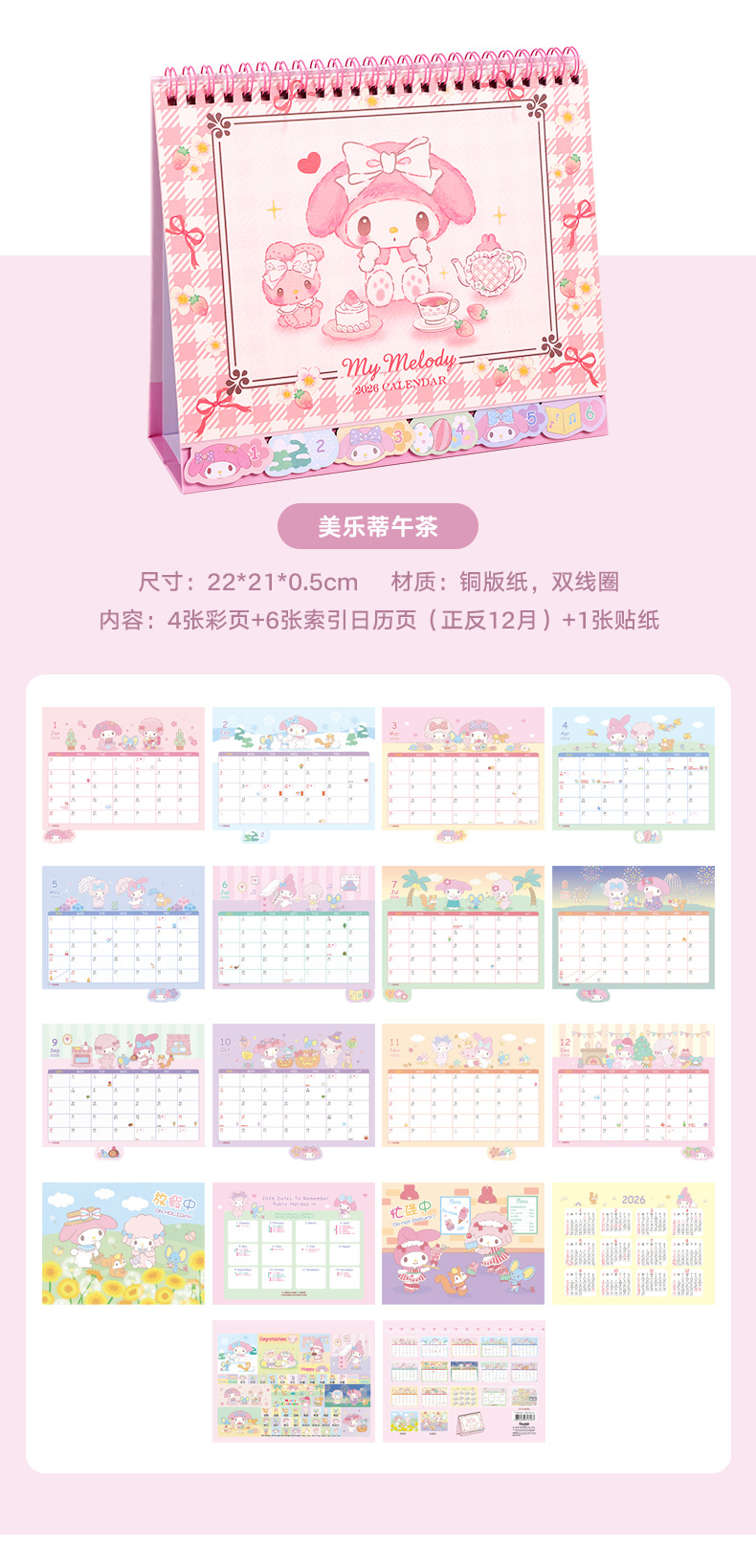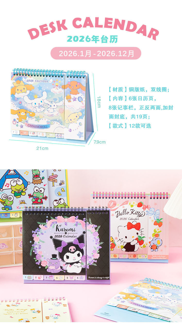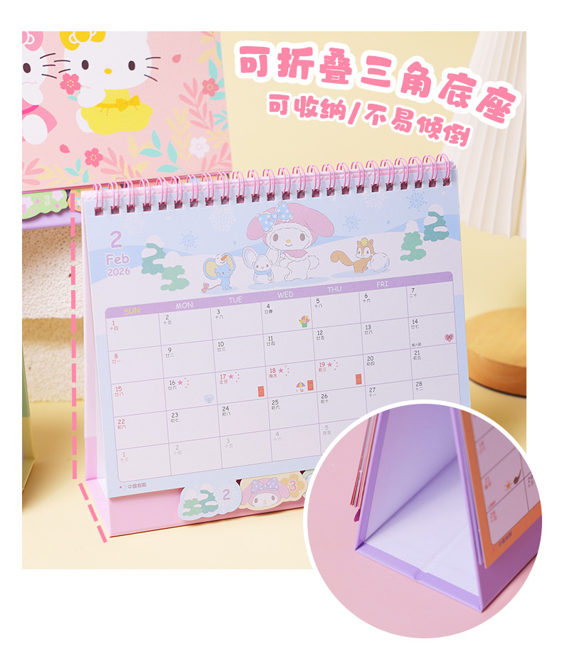 【香港休日カレンダー】2026年新作サンリオ卓上カレンダー学生・オフィス用クロミ月間カレンダー