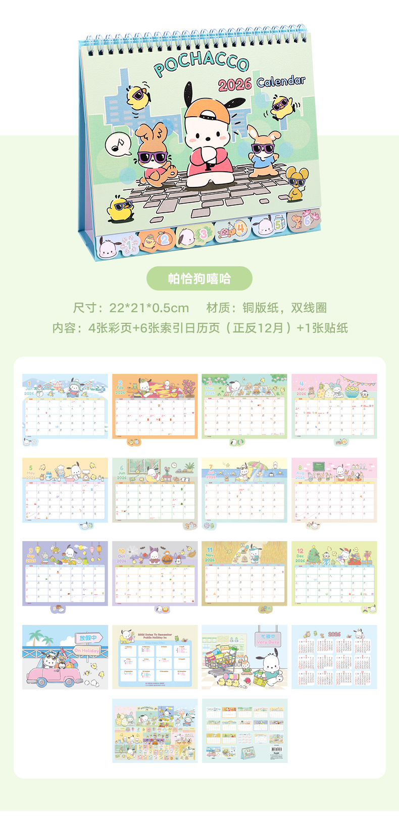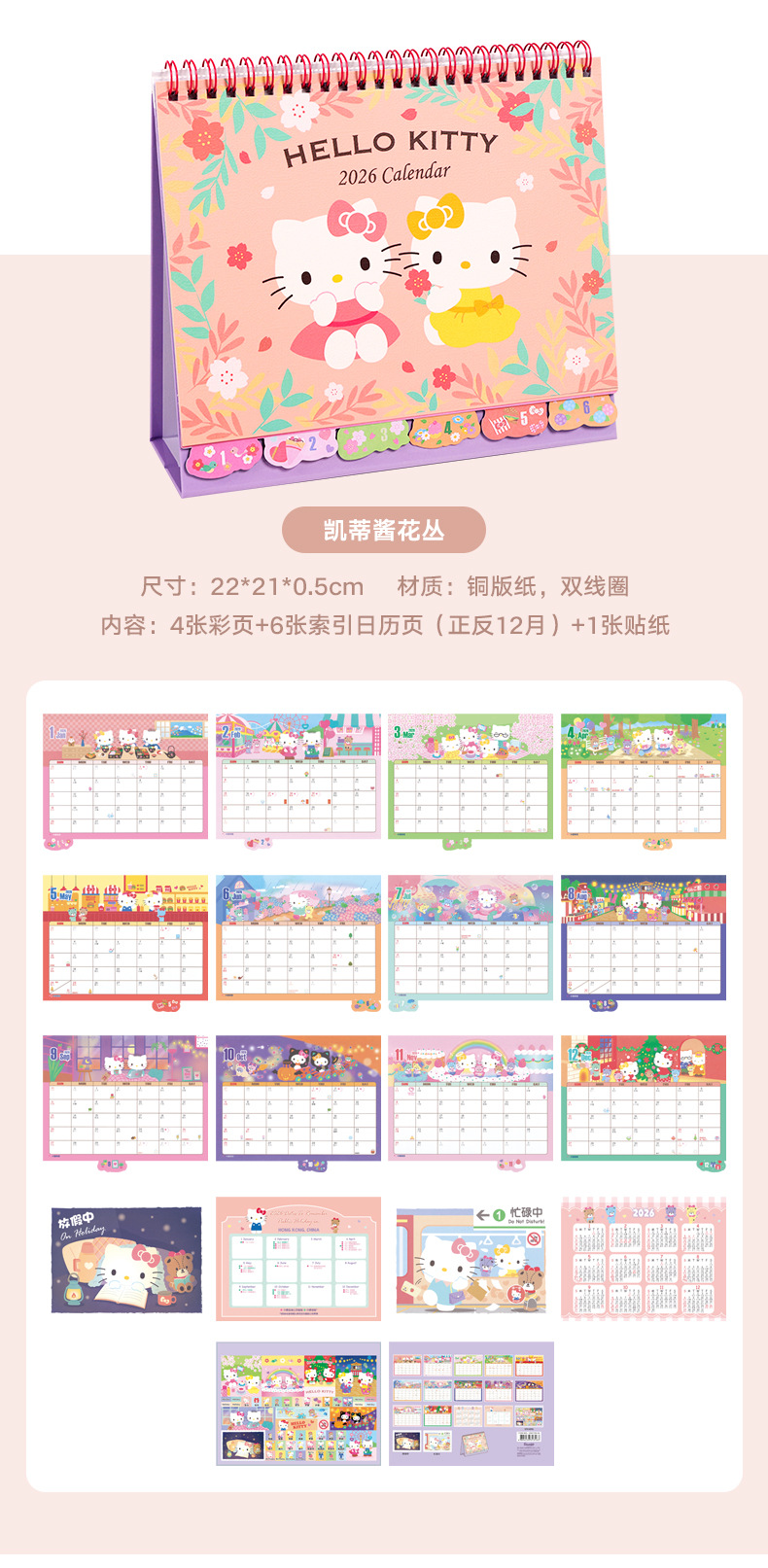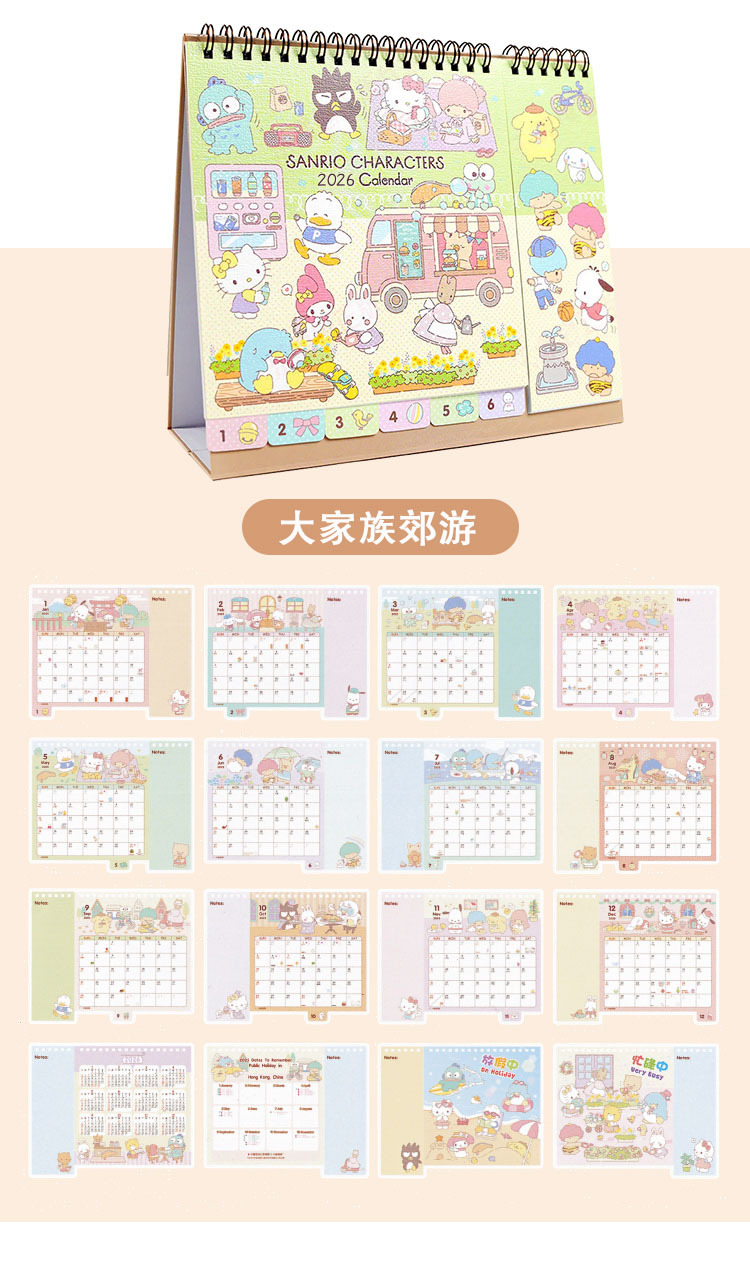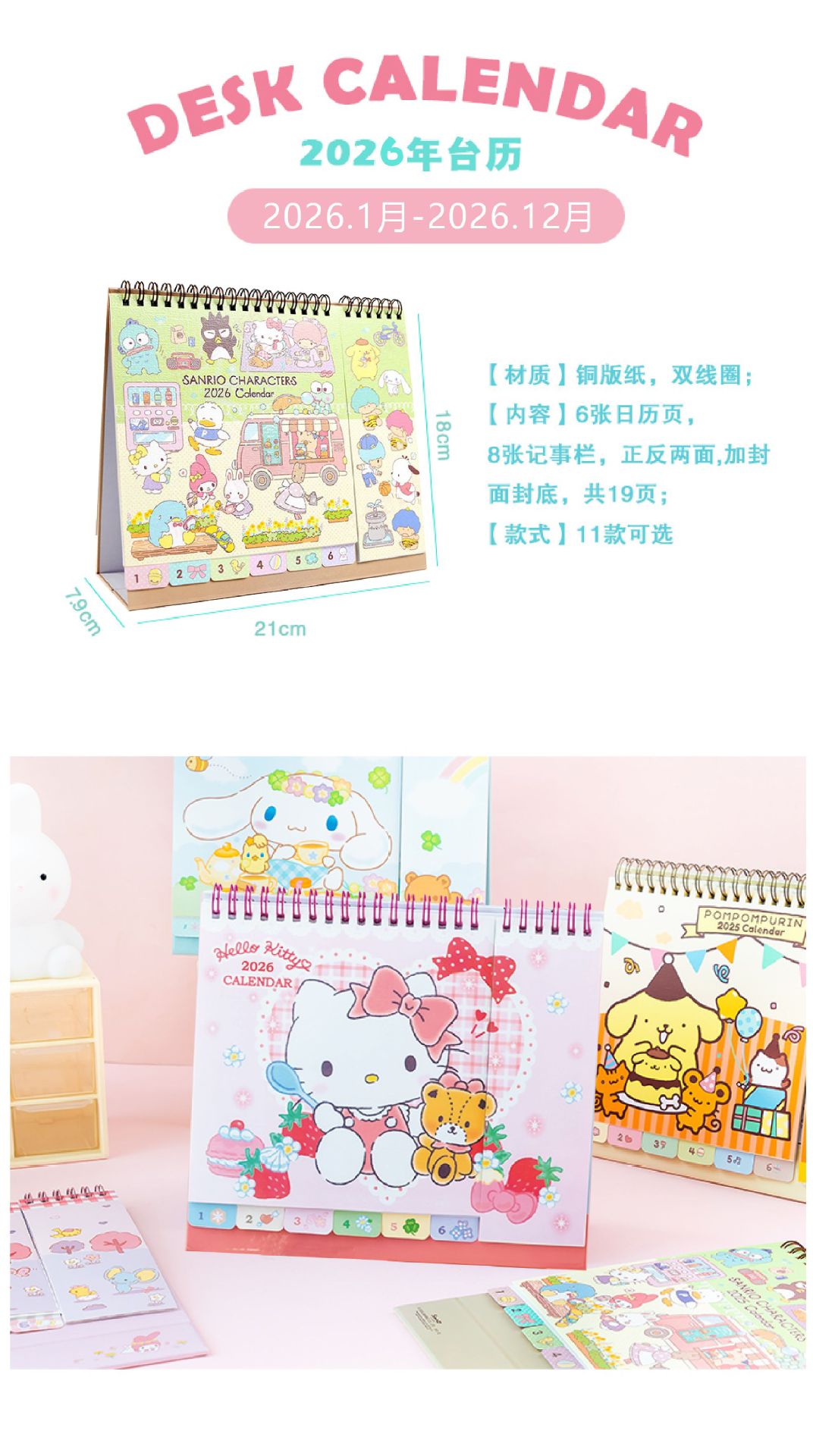 【香港休日カレンダー】2026年新作サンリオ卓上カレンダー学生・オフィス用クロミ月間カレンダー
