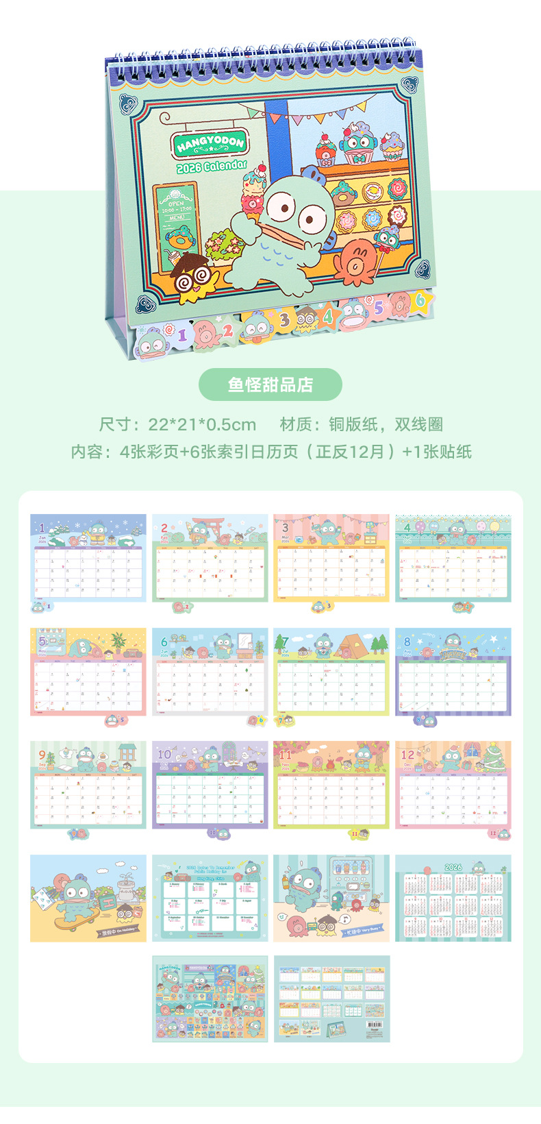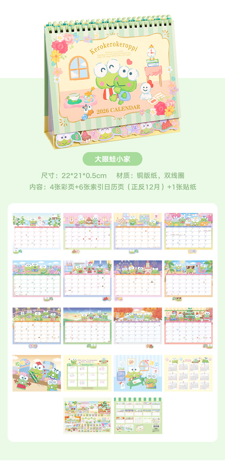 2026港版台历卡通可爱彩色内页香港公众假期繁体字桌面摆件大日历