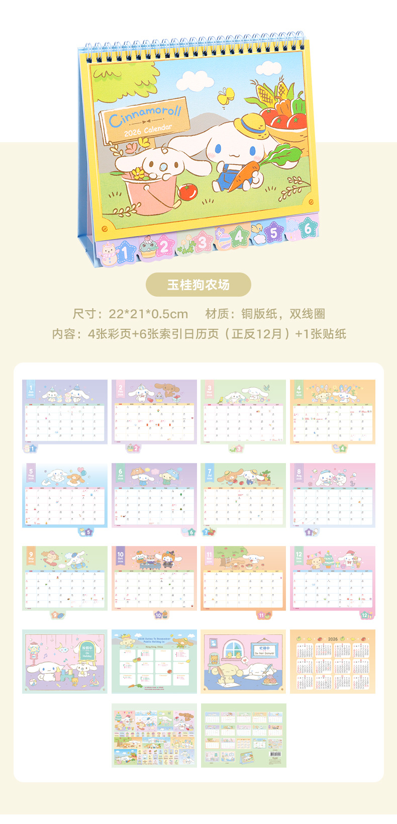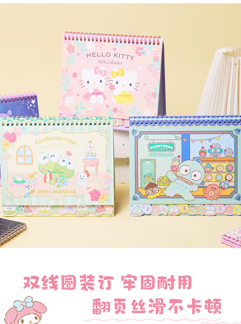 正版三丽鸥2026台历学生书桌面可爱玉桂狗库洛米办公摆件活页日历