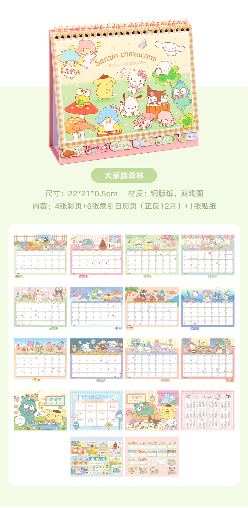 三丽鸥台历库洛米2026迷你小日历卡通日历台历高颜值可爱学生台历