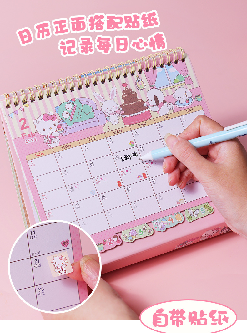 三丽鸥正版小号桌面台历库洛米玉桂狗日历月历学生计划表办公日程
