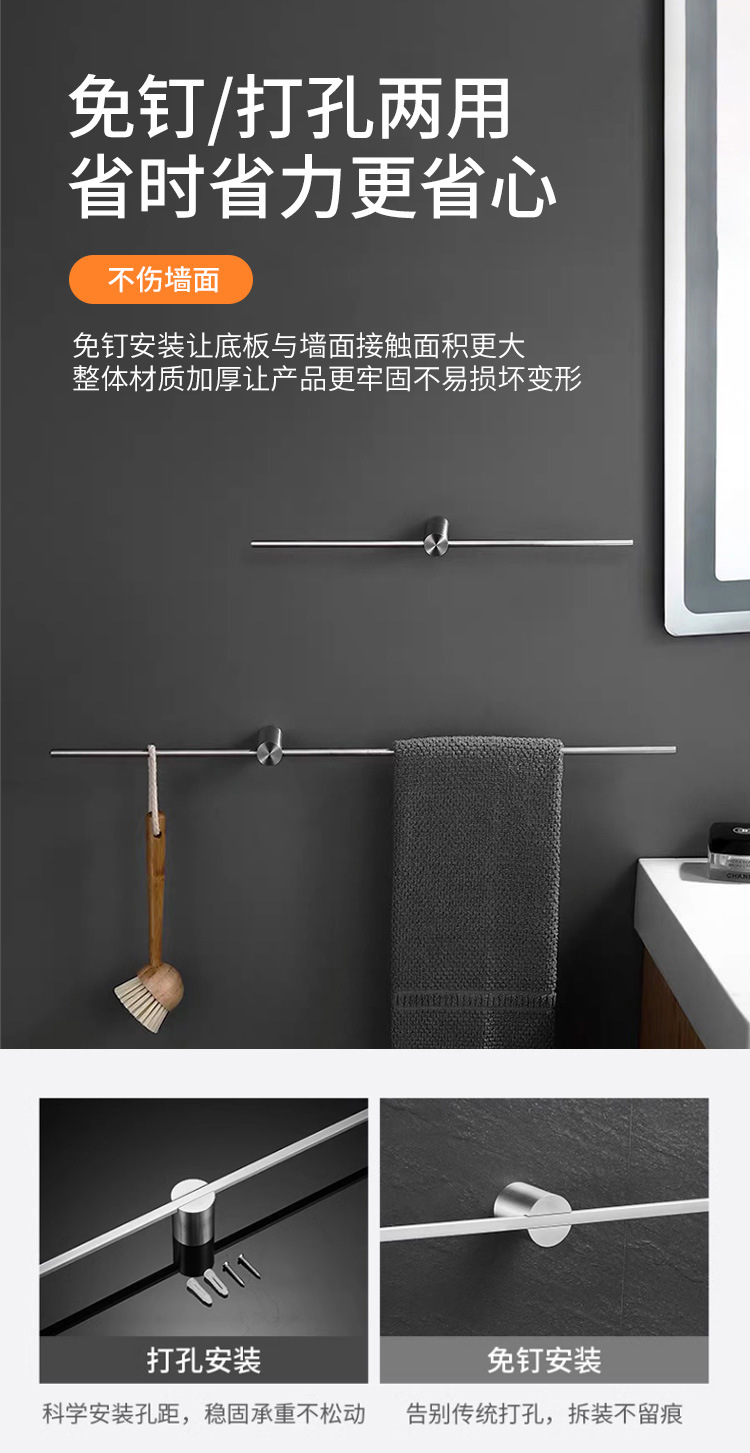 メーカー直販304ステンレス製タオルラック穴なしトイレタオルバー単双棒バスタオルラック棚