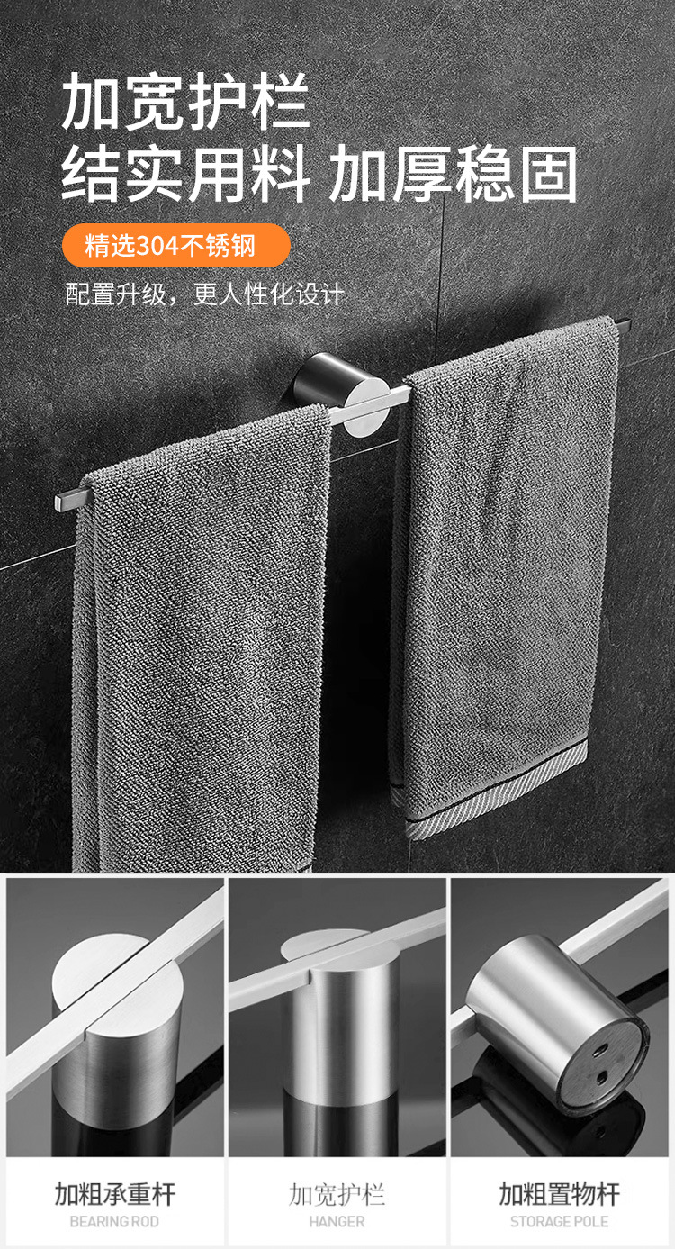 304ステンレス製タオル掛け穴なしホテルトイレタオルバー浴室二重掛けタオル風呂ホテル