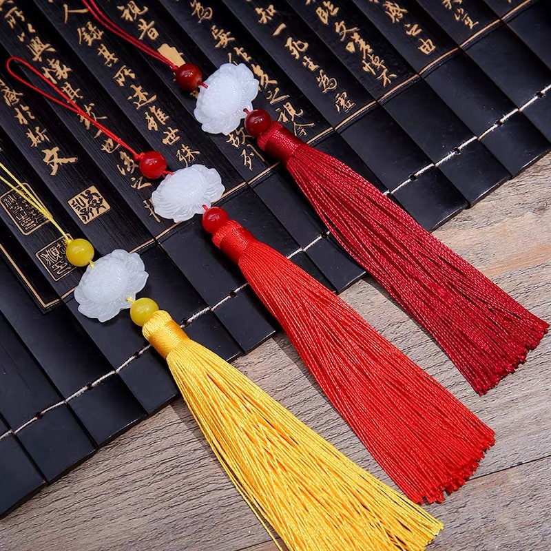 白玉蓮花流蘇穂子吊穂12cm中国式時代劇漢服扇風機