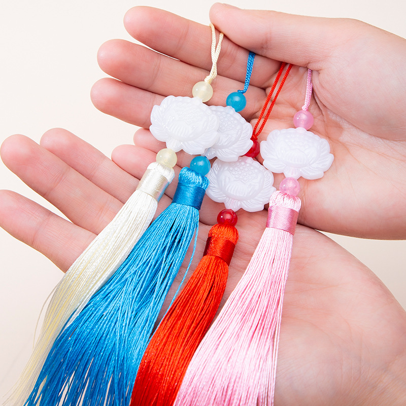 12cm流蘇穂子掛け両面模造白玉蓮花流蘇吊穂新中国式古着服ストラップペンダント