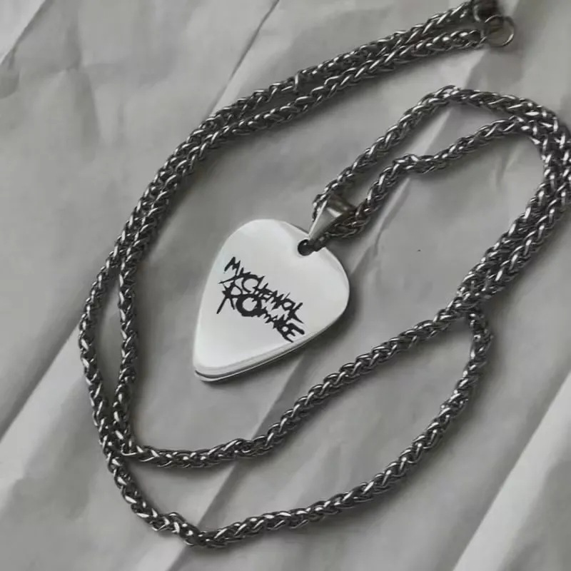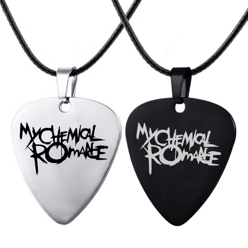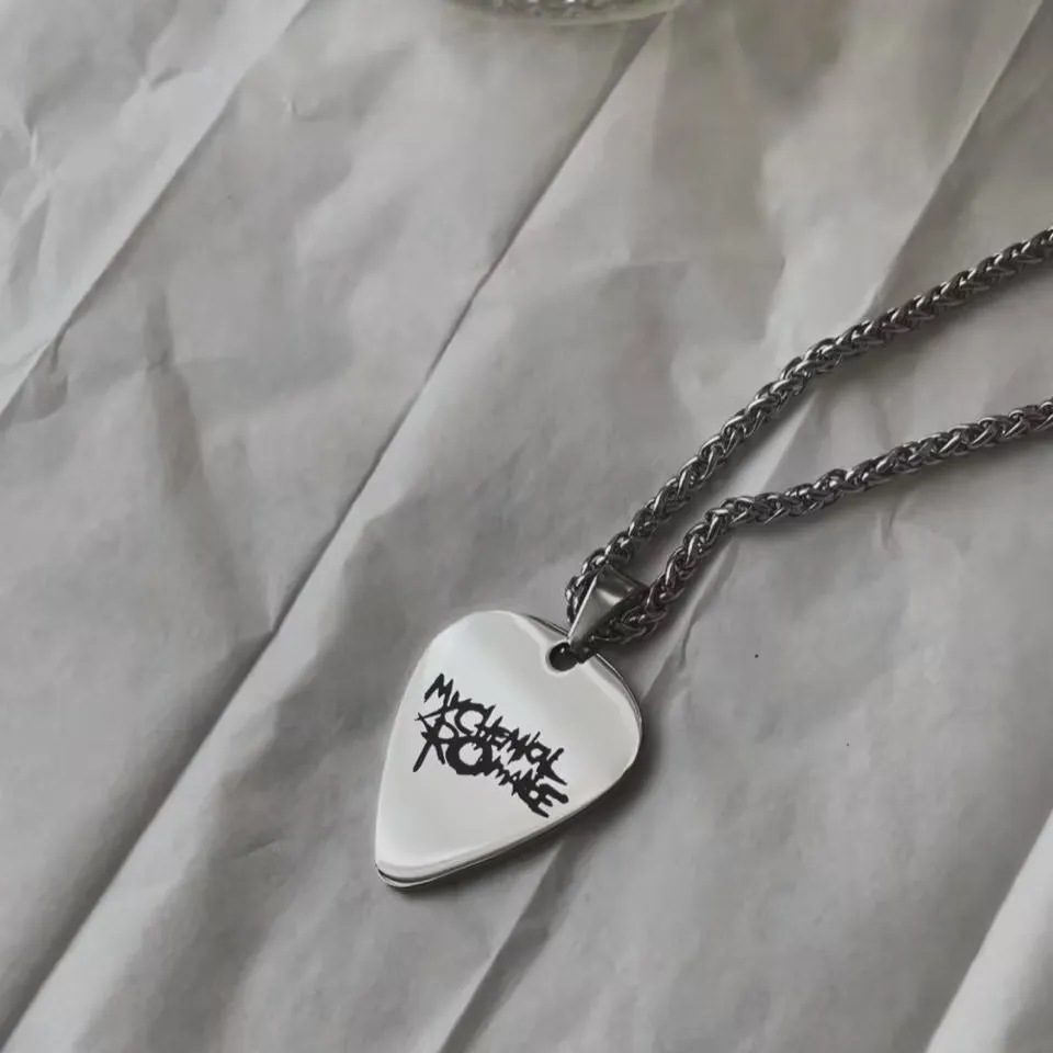 私の化学ロマンチックなロック金属ギターピックネックレスレーザー彫刻部品ステンレスペンダントネックレス