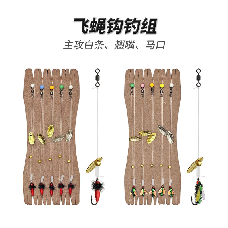 フライフック瓜子馬口スパンコール仕掛組袖フック付助投器路亜セット淡海両用白条スズキ