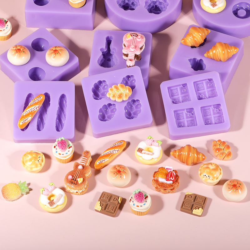 卡通食玩甜甜圈面包法棍巧克力翻糖蛋糕装饰滴胶捏捏乐硅胶模具