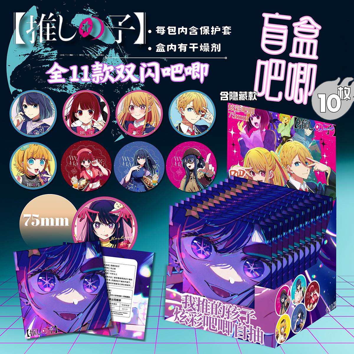 第二弾75バッジフラッシュカードセットPETダブルフラッシュバッジ10個入りブラインドボックスマウスティン限定