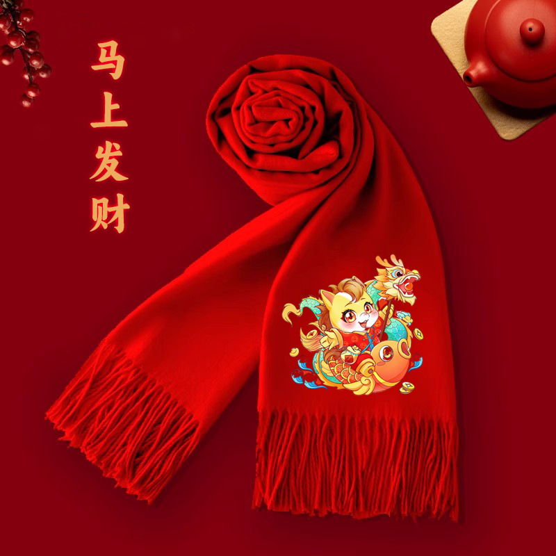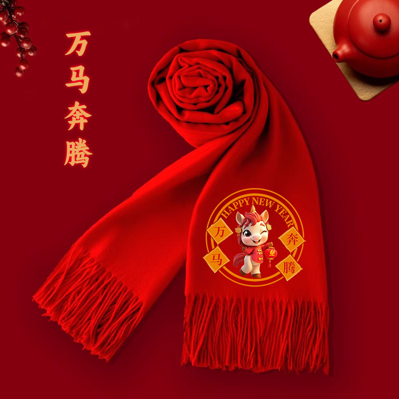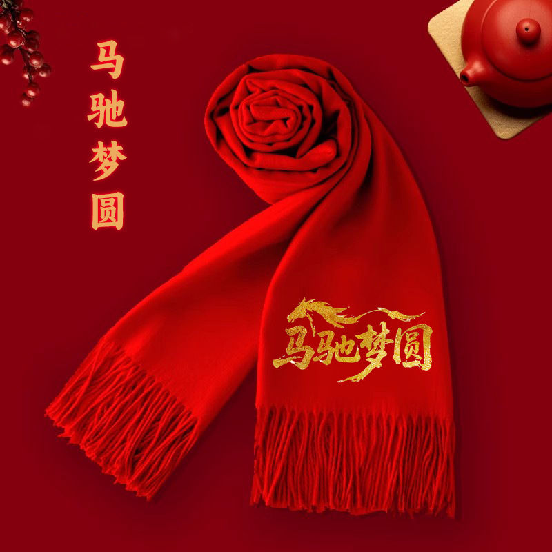 中国红仿羊绒围巾定制批发印logo秋冬季加厚保暖马年围脖年会礼品