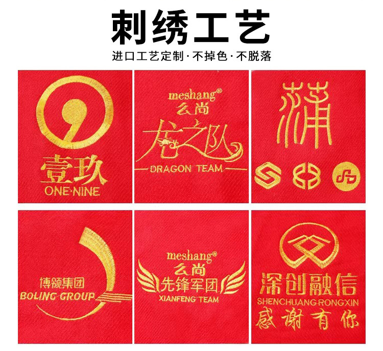 红围巾定制logo中国红批发刺绣印字红色大红围巾开业会议聚会年会
