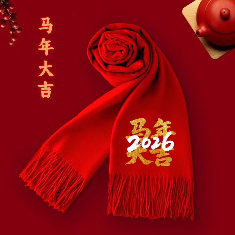 红围巾定制2026马年新款中国红围巾印字刺绣logo活动聚会庆典年会
