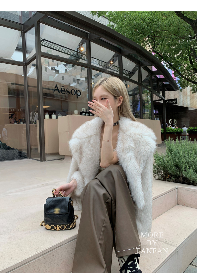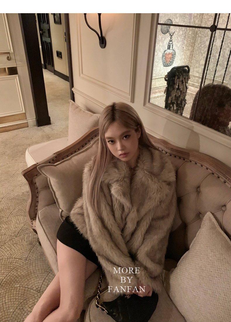 アマゾン欧米越境冬用人工毛染め尖襟スーツ風ファー女性用イミテーションフォックスファーコートジャケット