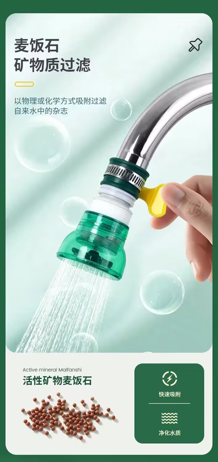 キッチン取り外し可能で洗える麦飯石浄水器ユニバーサルインターフェースフィルターノズル防滴シャワー水道水省エネ蛇口