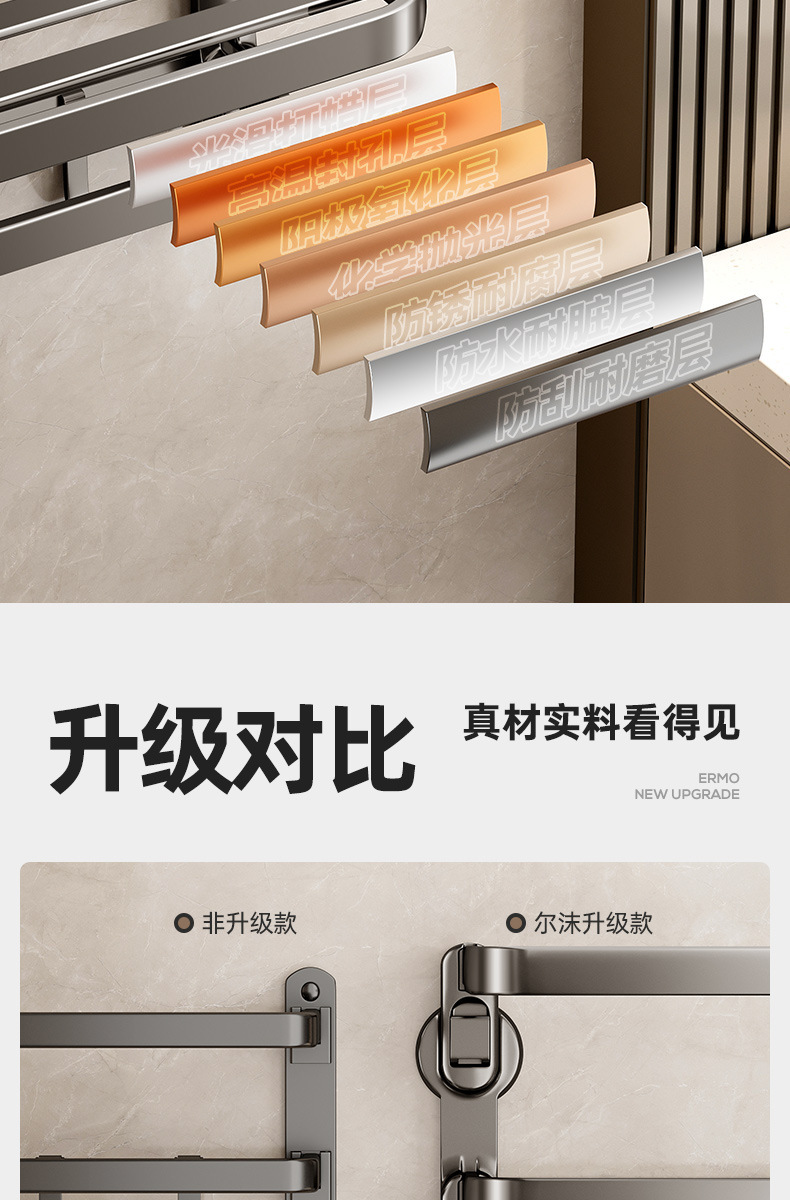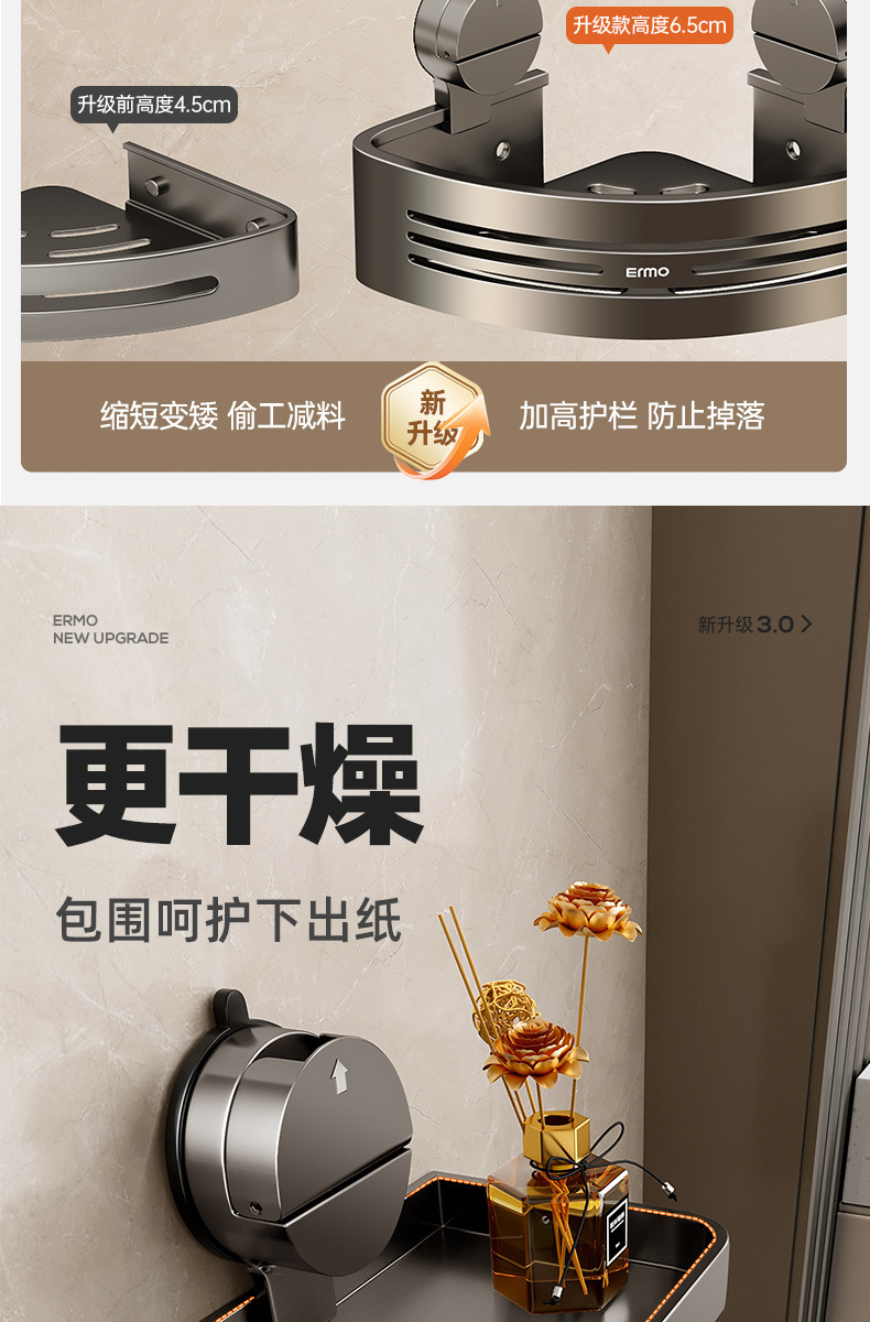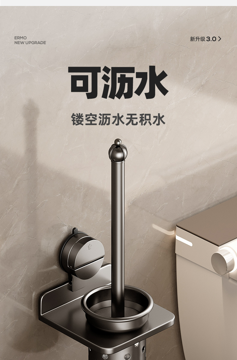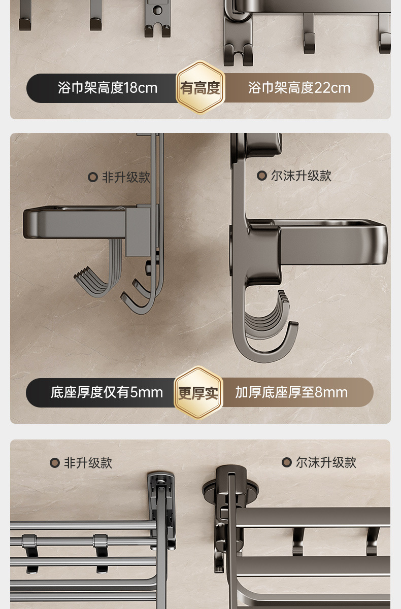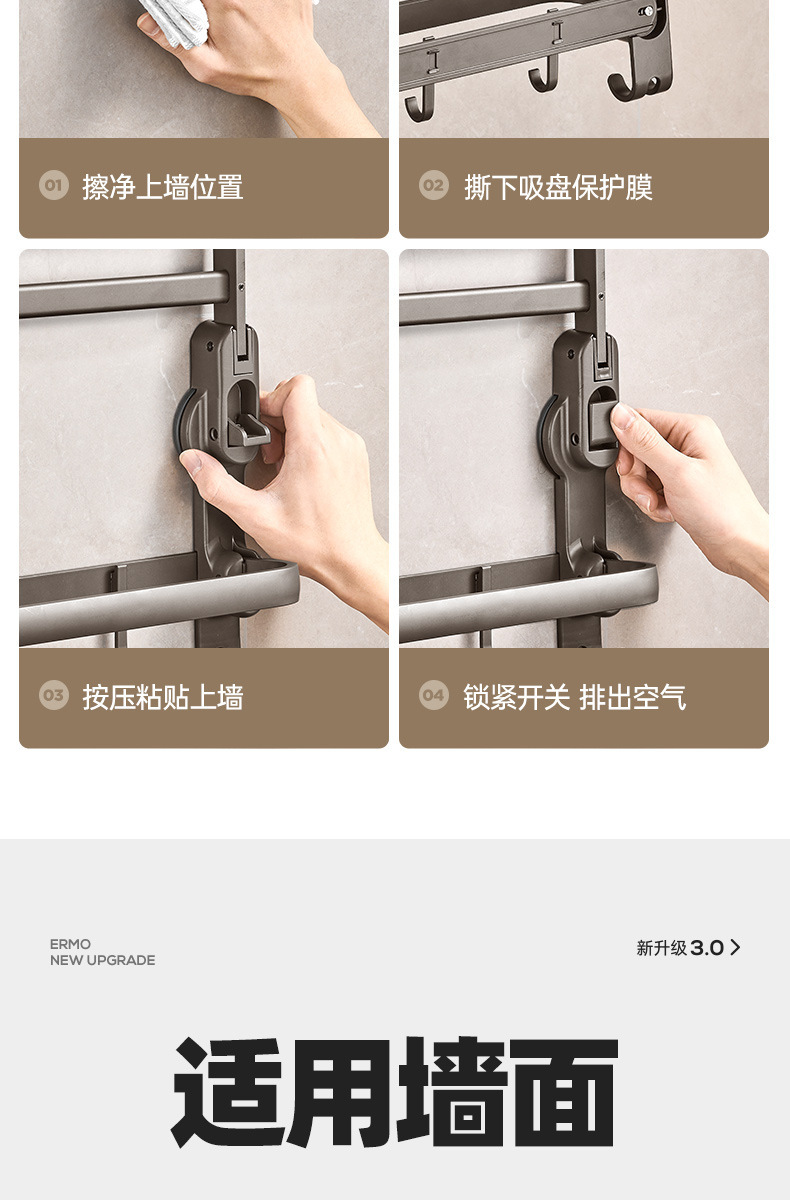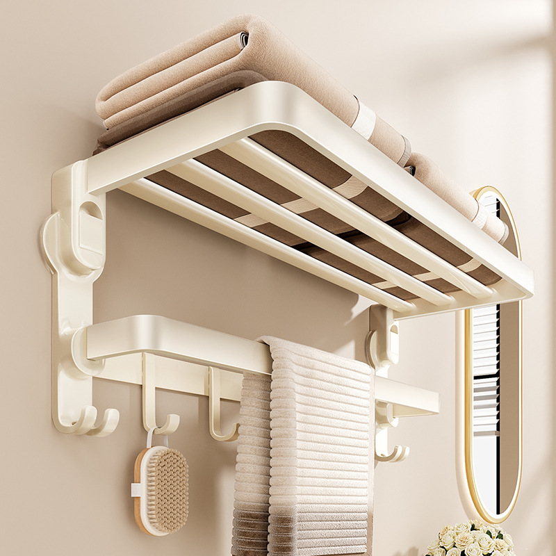 奶油风铝合金吸盘毛巾架一体卫生间免打孔浴巾架子浴室置物架挂架