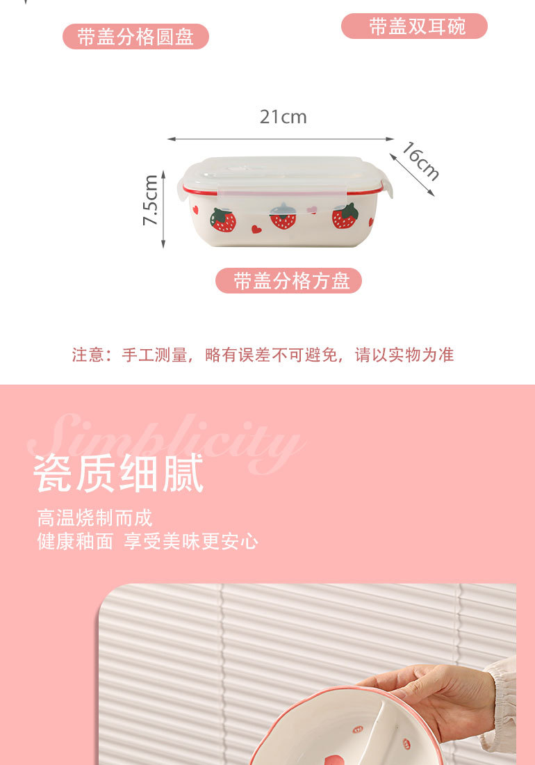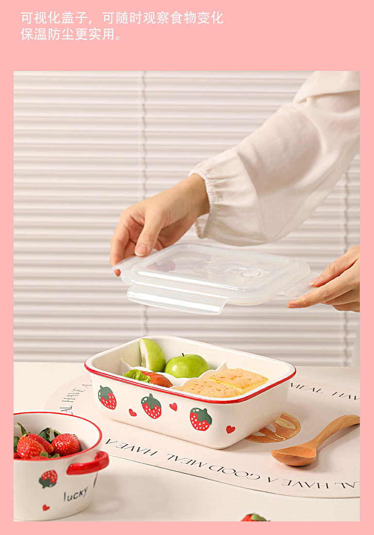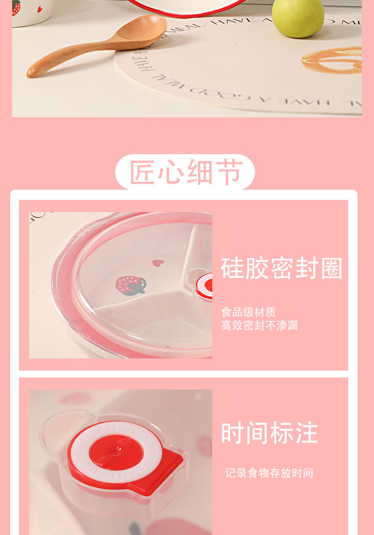 陶瓷分格饭盒微波炉加热上班族带盖可爱卡通学生保鲜碗圆形便当盒