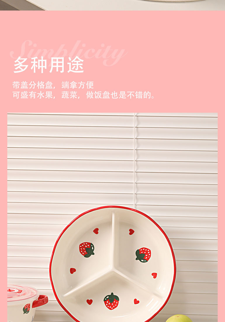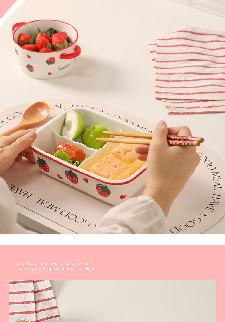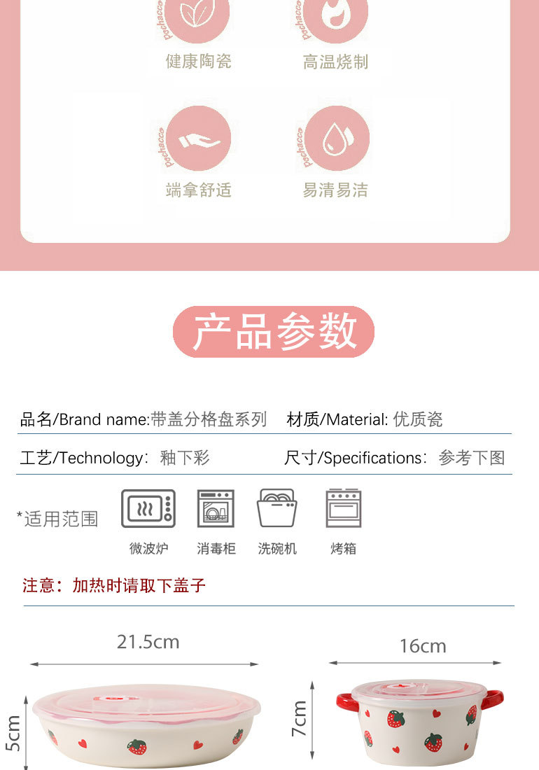 陶磁器の深層分格弁当箱蓋付き減脂三格皿電子レンジ加熱料理皿果物皿弁当皿