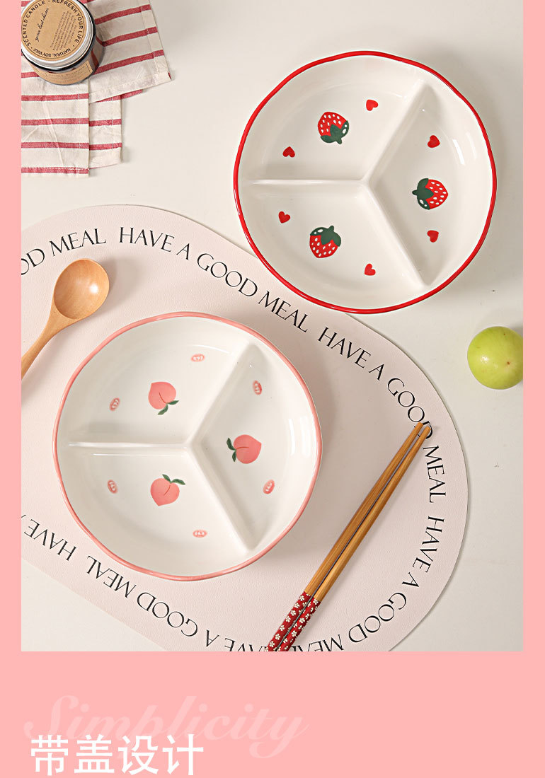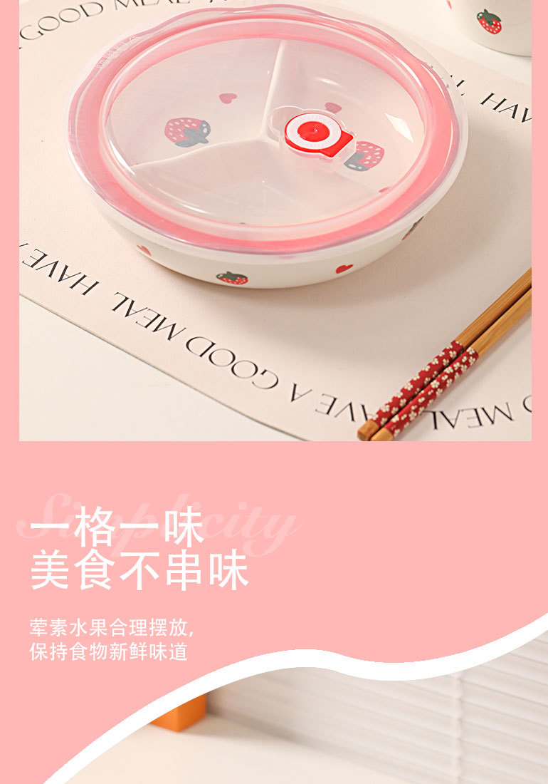 陶磁三分格一人食減脂分格皿弁当箱ランチボウルサラリーマン蓋付き保存ボウル円形弁当箱