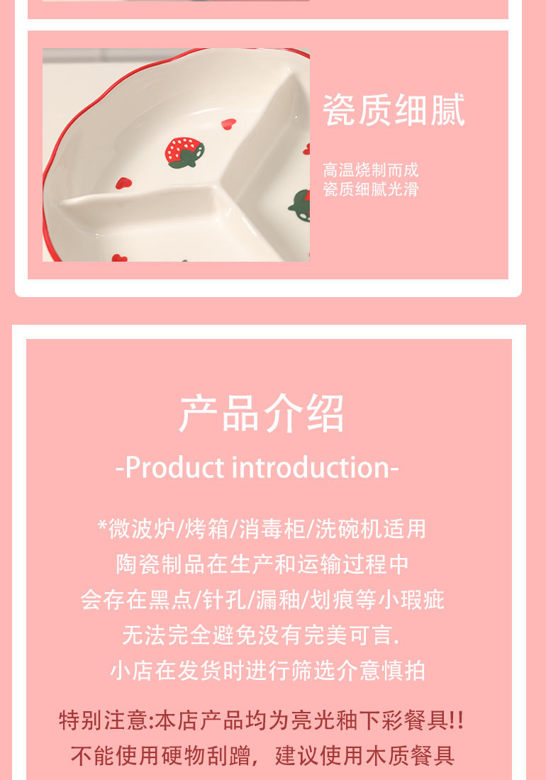 ピンク豚分格減脂分食皿一人食家庭用朝食食器陶磁器三格ダイエット定量皿