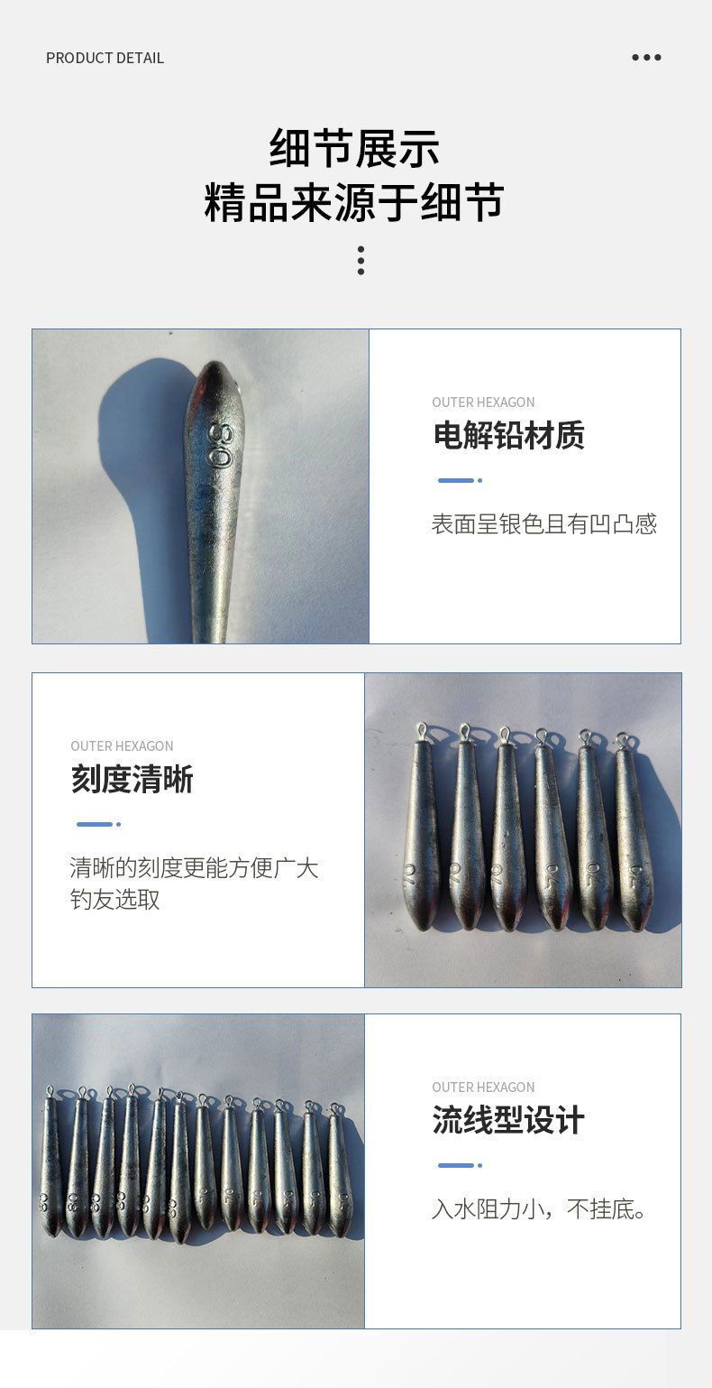锚鱼双环九江铅坠圆柱防挂底长条铅坠海竿定风渔坠柳叶双环深海铅
