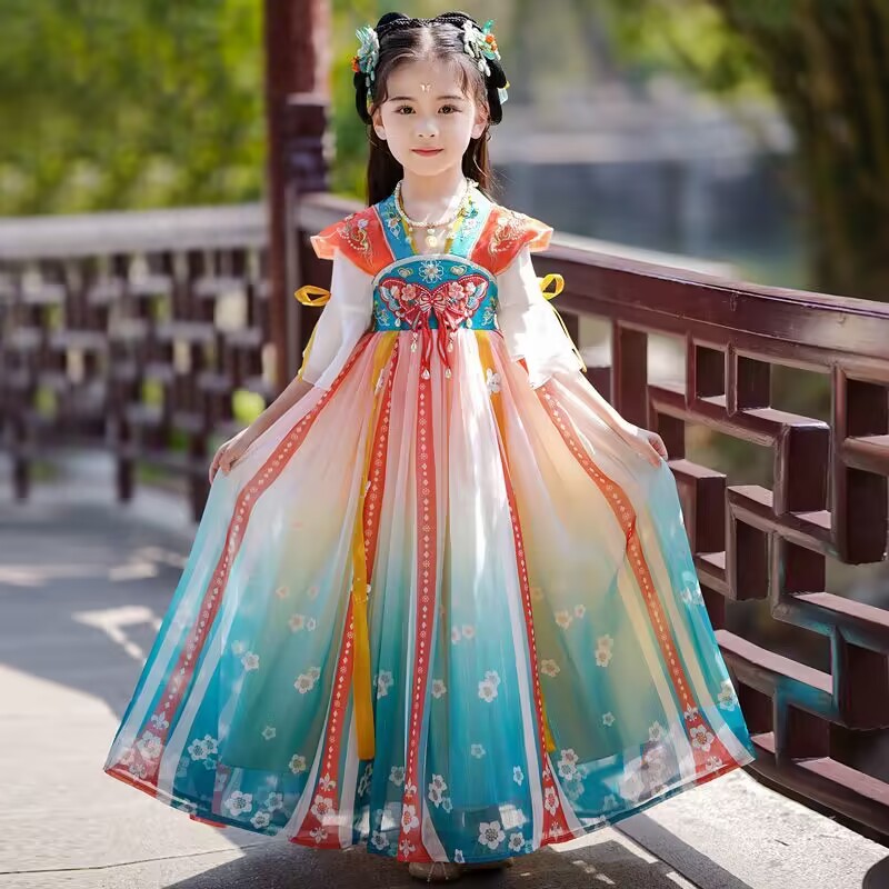 新しい漢服女の子古代中国風ドレス春と秋の子供のスカートスーパー妖精唐装古筝パフォーマンス服夏