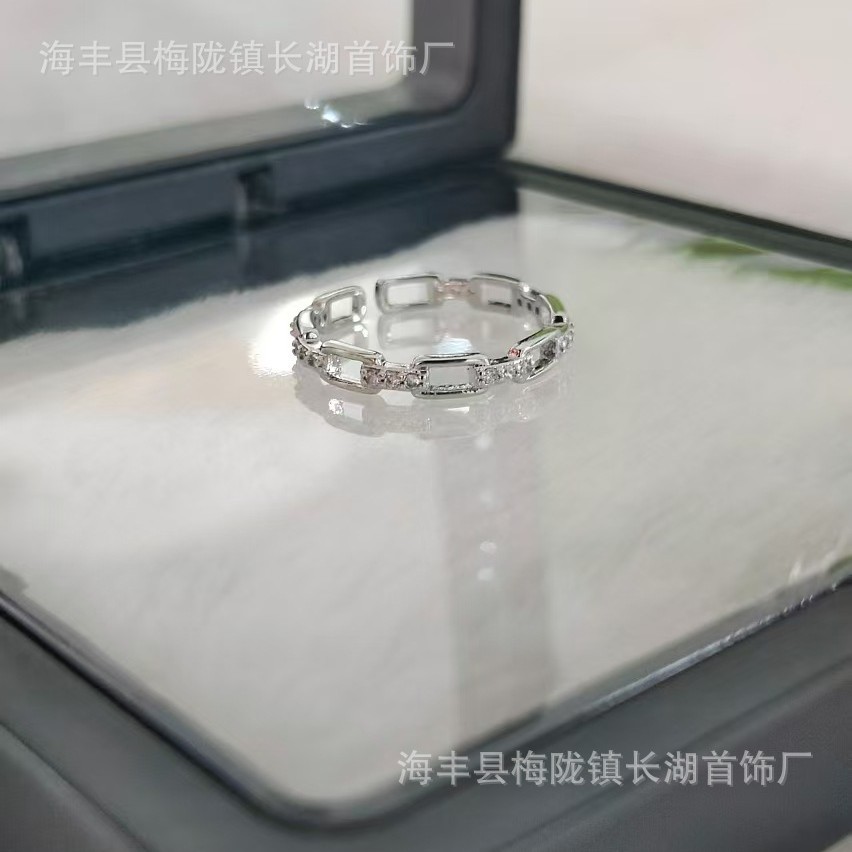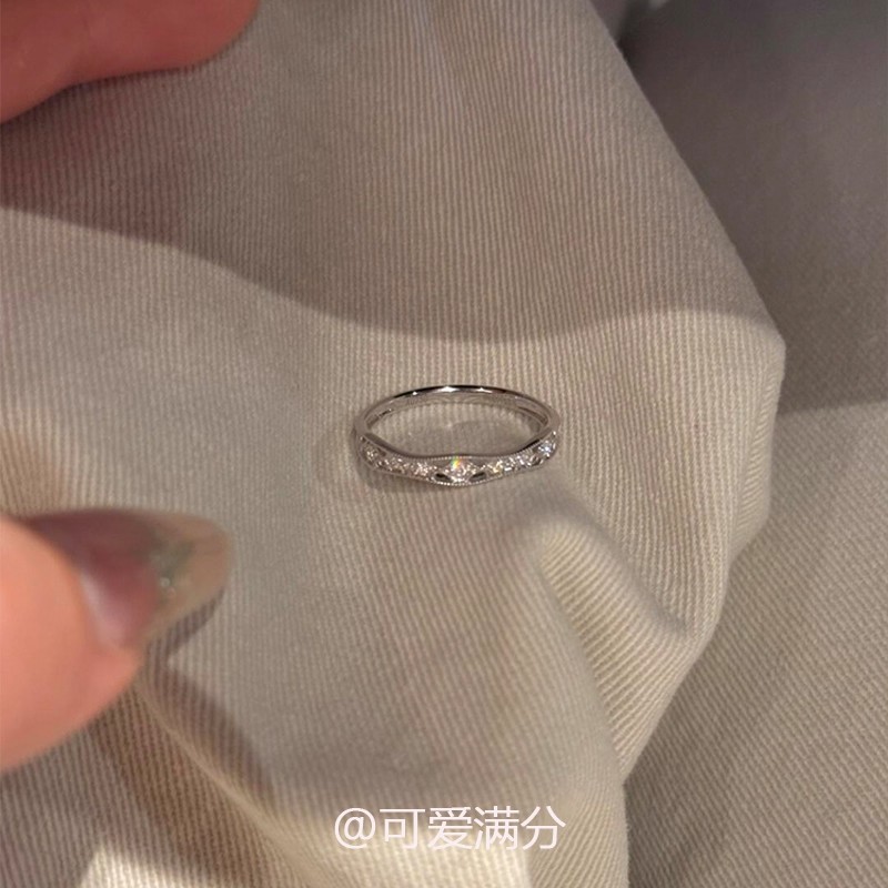 微镶锆石镂空戒指韩系清冷感爆闪百搭食指戒