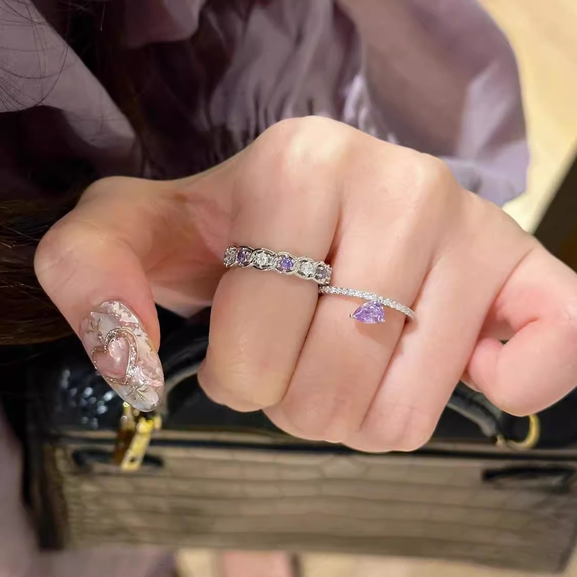 プロヴァンス ~ 超閃淡紫色ジルコン軽豪華高級感気質指輪開口指輪