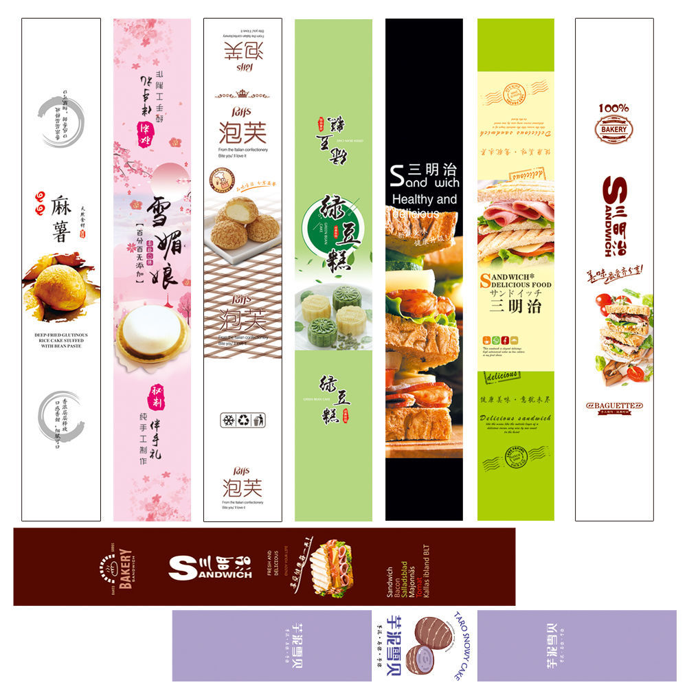 ベーキング用長尺粘着ステッカー、ビスケット、ケーキ、洋菓子、デザート、卵黄餅、ブリスター包装用シール、ラベル、裏面粘着