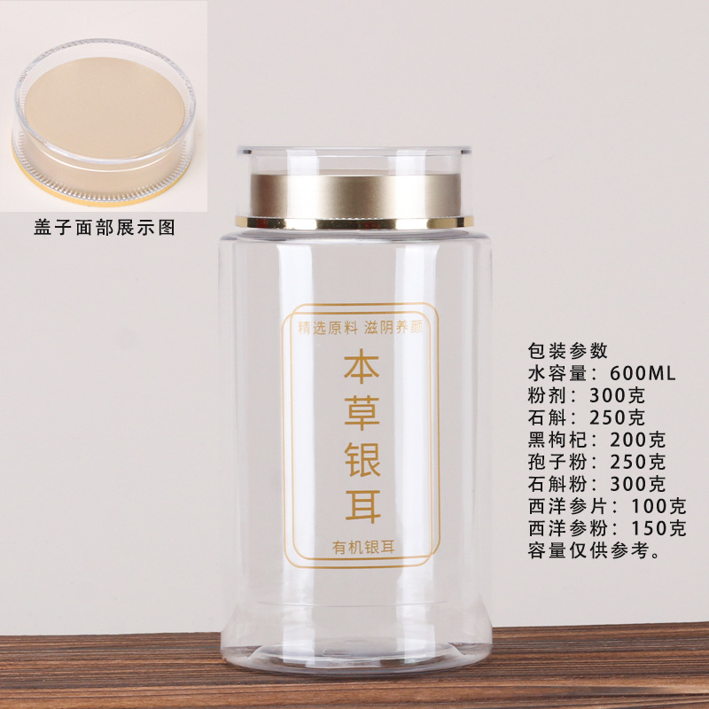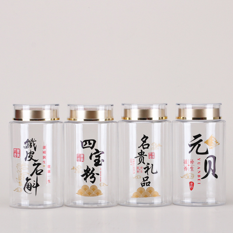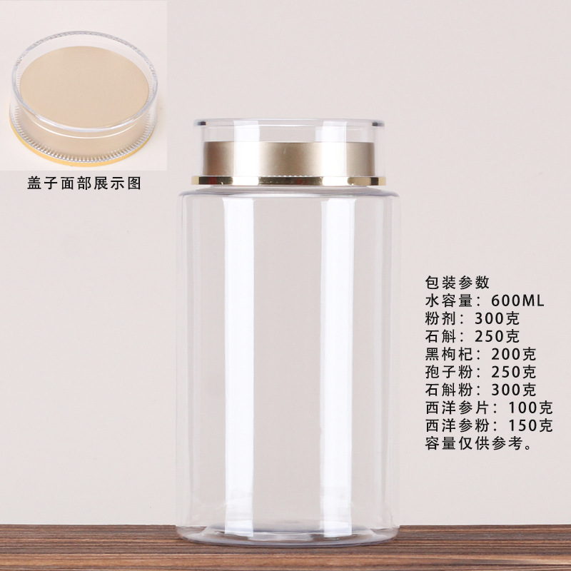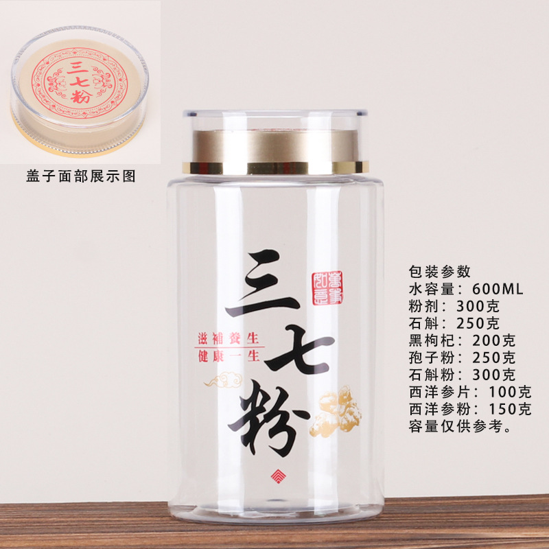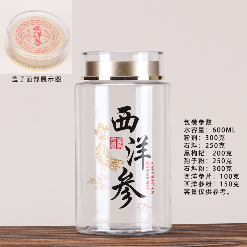 二重カバー厚いPET高透明ボトル漢方薬粉石gok西洋参片生薬食品級プラスチック缶