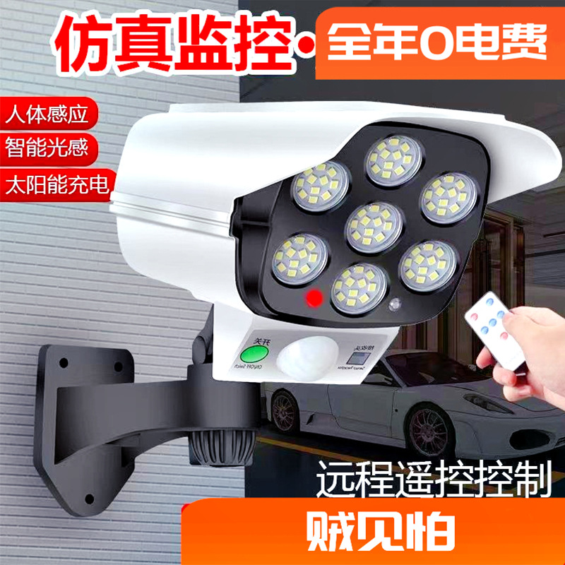 クロスボーダーソーラー77LED盗難防止監視ライトリモコンワイヤレス模擬街路灯偽カメラ中庭盗難防止ライト