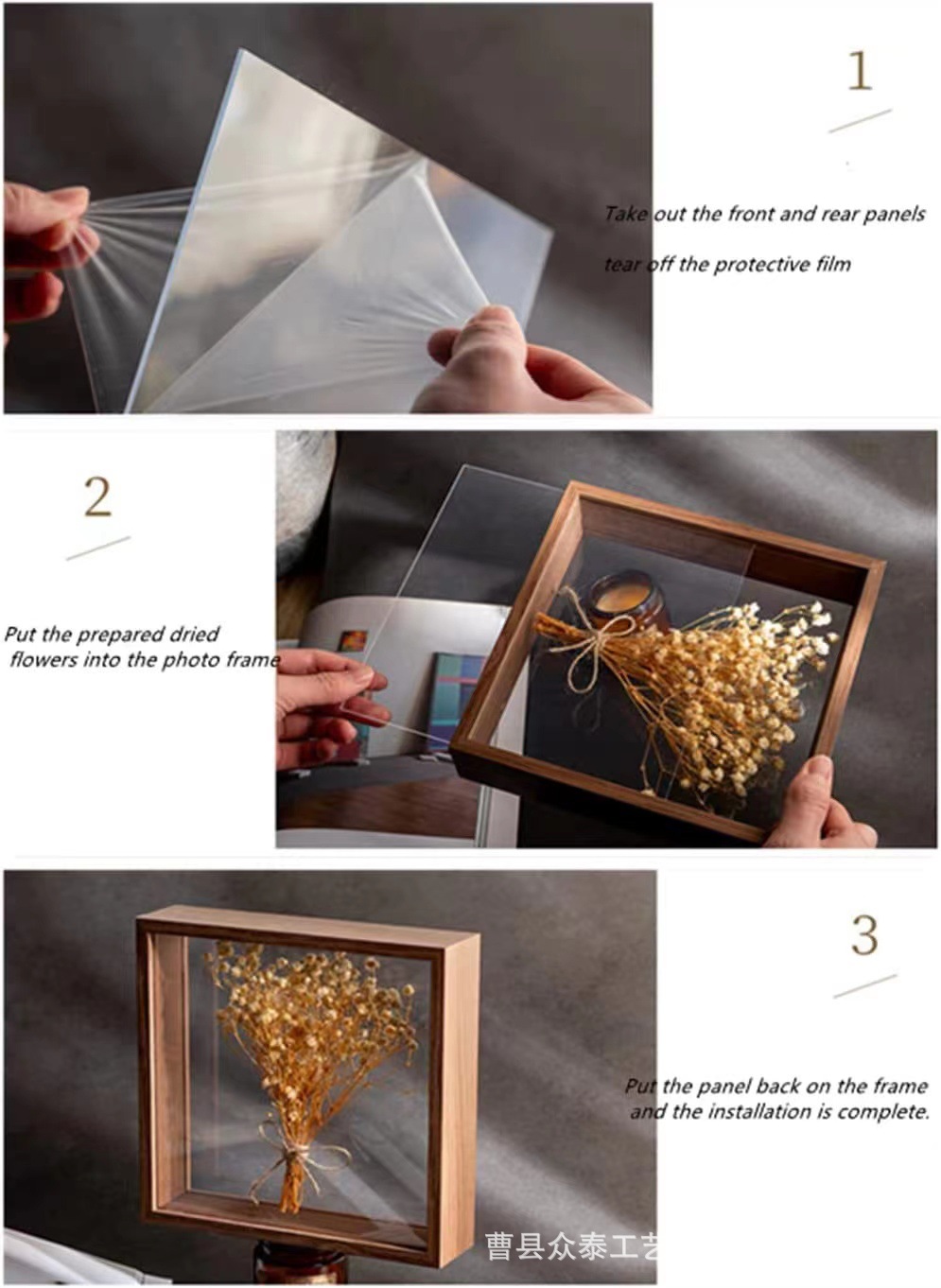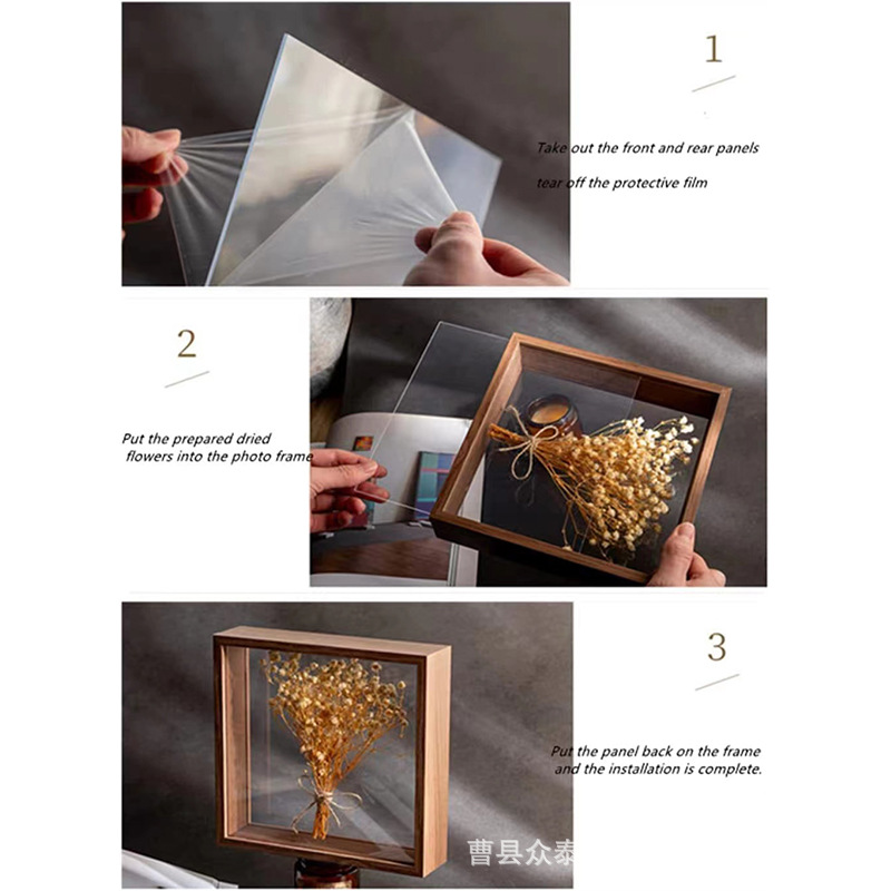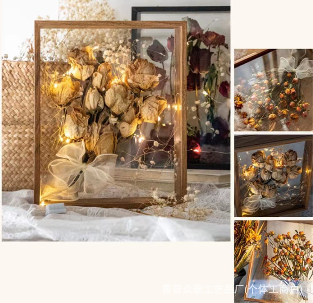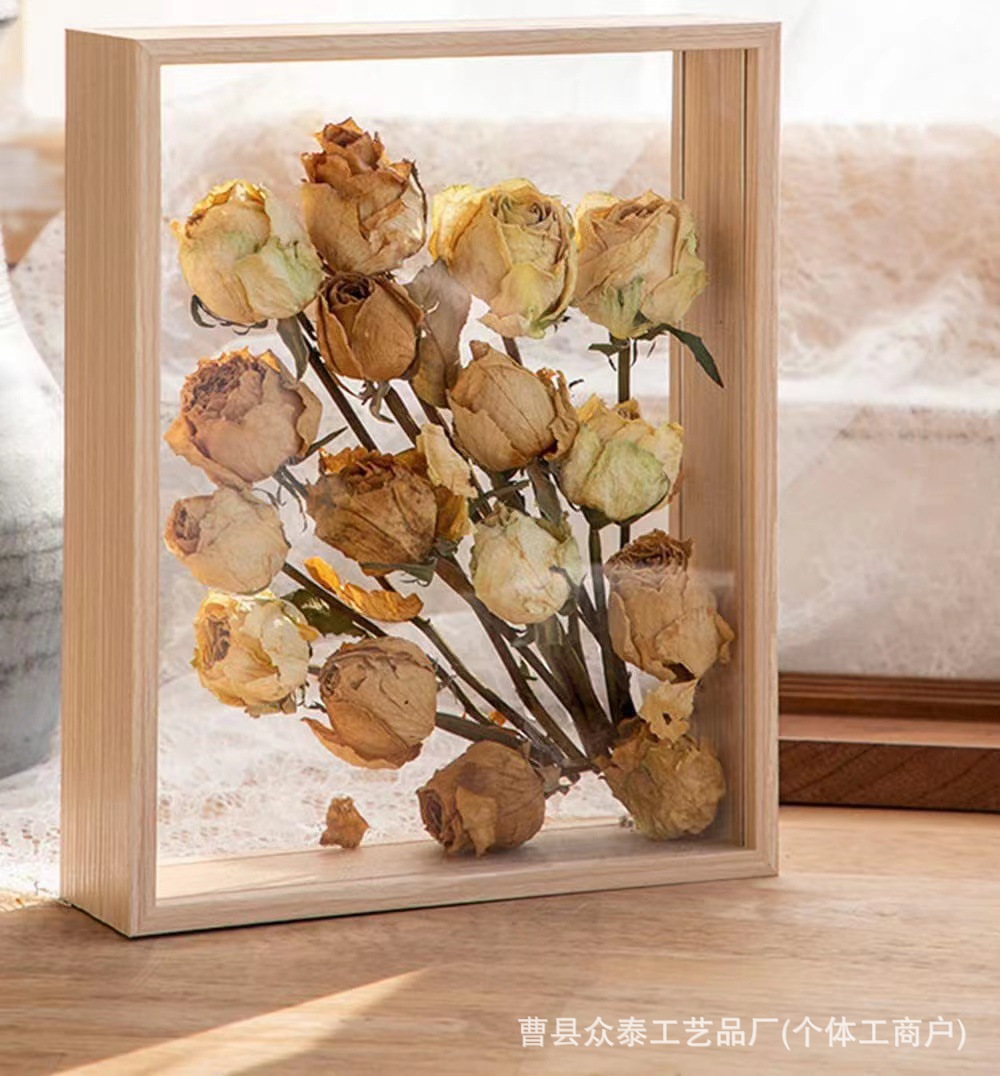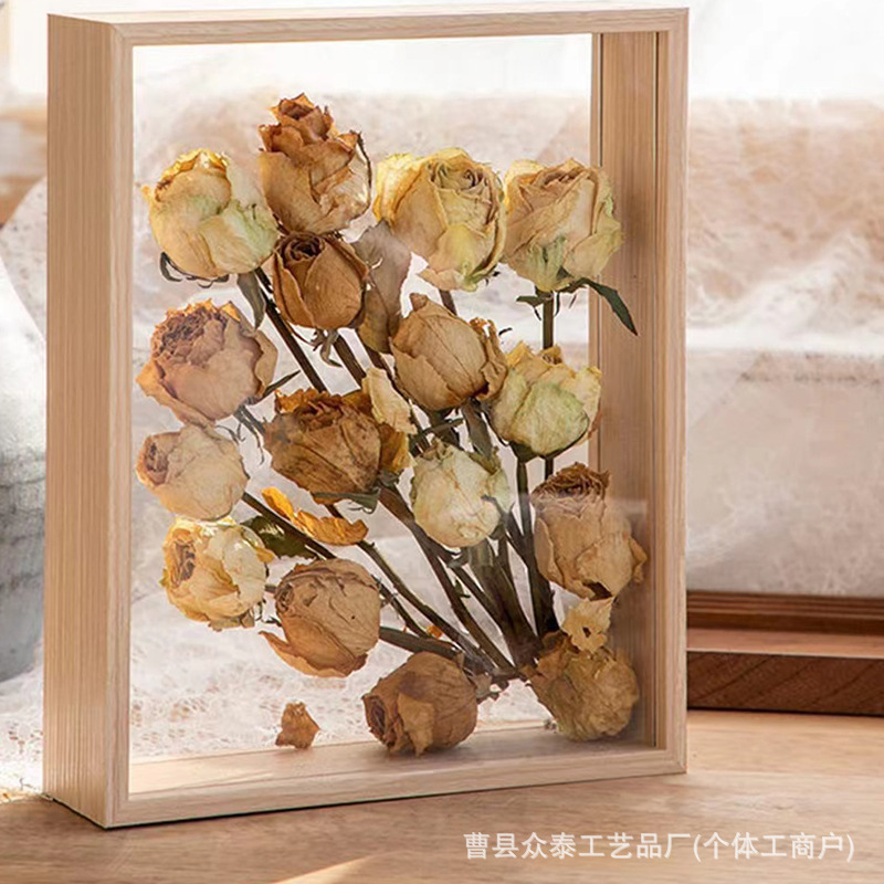 ドライフラワーフォトフレーム両面透明アクリルフォトフレーム木製中空立体diyバラ展示フレーム置物プレゼント