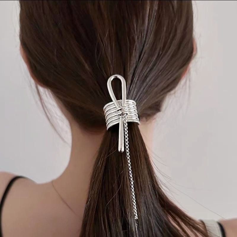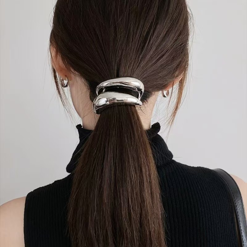 Ins冷たい風二重金属髪ボタン女性ファッション後頭部ポニーテール髪カード気質ヘアクリップ髪飾り