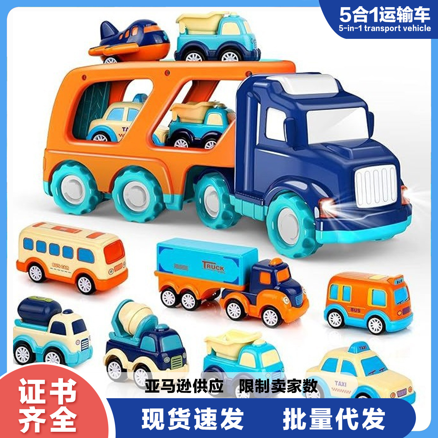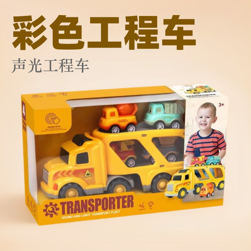 アマゾンの大型二重模擬貨物箱トレーラーの音光益智工事車リターン車セット玩具車卸売り