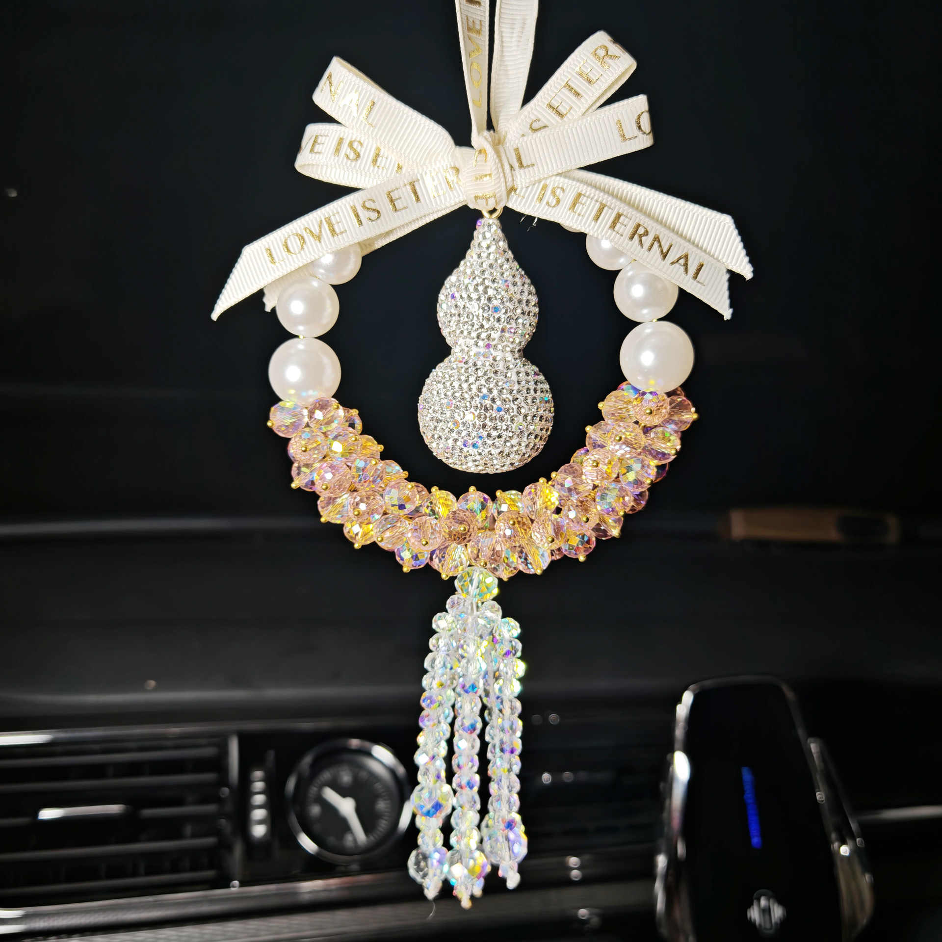 Z1Q汽车挂件新款高级车载高挡网红水晶镶钻葫芦吊坠喜乐后视镜