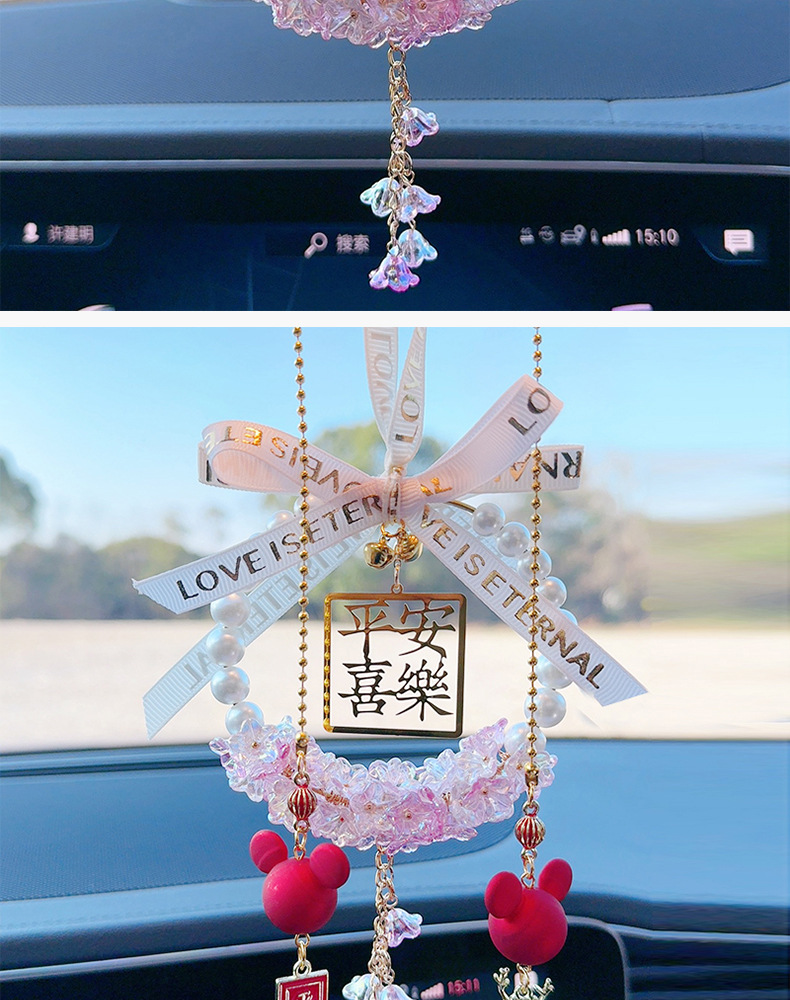 新型ハイエンドネットレッド香薫玲玲水晶自動車ストラップ女子高級感車載バックミラーペンダント