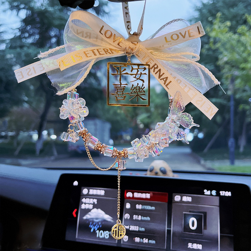 車のペンダントハイエンド車のインテリアペンダント 2025 車のバックミラー出入り安全インターネット有名人クリスタルペンダント女性のための