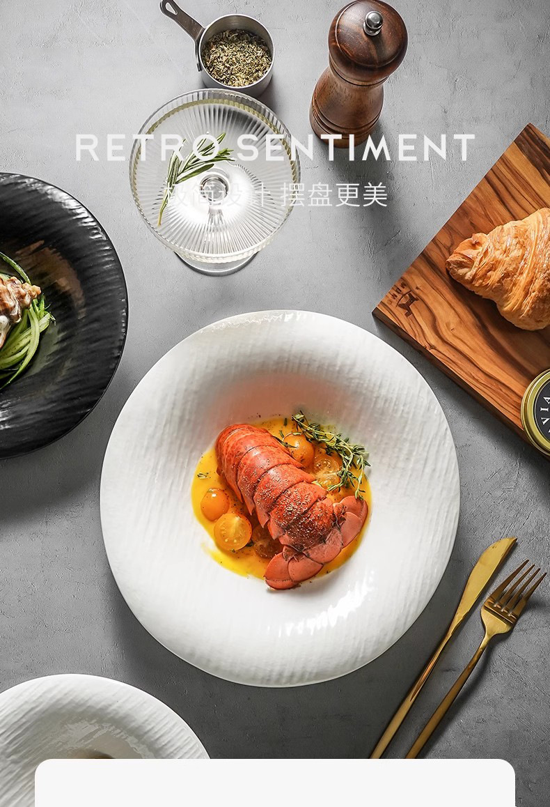 陶磁器皿家庭用高級感浅皿大サイズ洋食皿ステーキ皿平皿パスタ皿ホテル料理皿