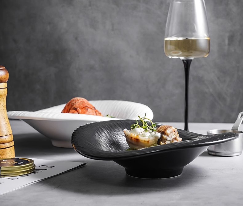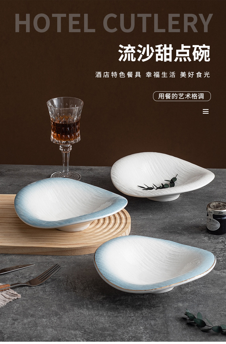セラミック異形皿洋食デザートボウル高級感不規則料理皿果物サラダボウルホテル業務用食器
