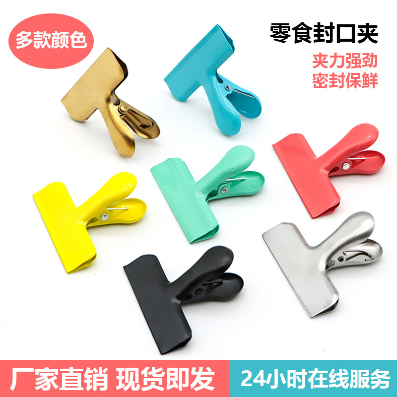 彩色不锈钢T型夹零食封口夹食物密封保鲜夹多功能燕尾夹票夹批发