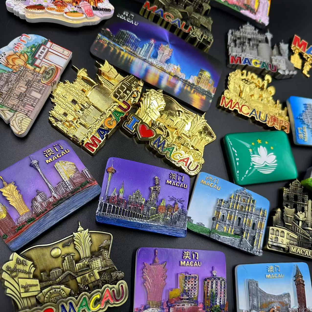 新型のマカオの冷蔵庫は金属の磁気を貼って観光地区の都市の観光の記念品の現物の冷蔵庫を貼って旅行の卸売りを貼ります。