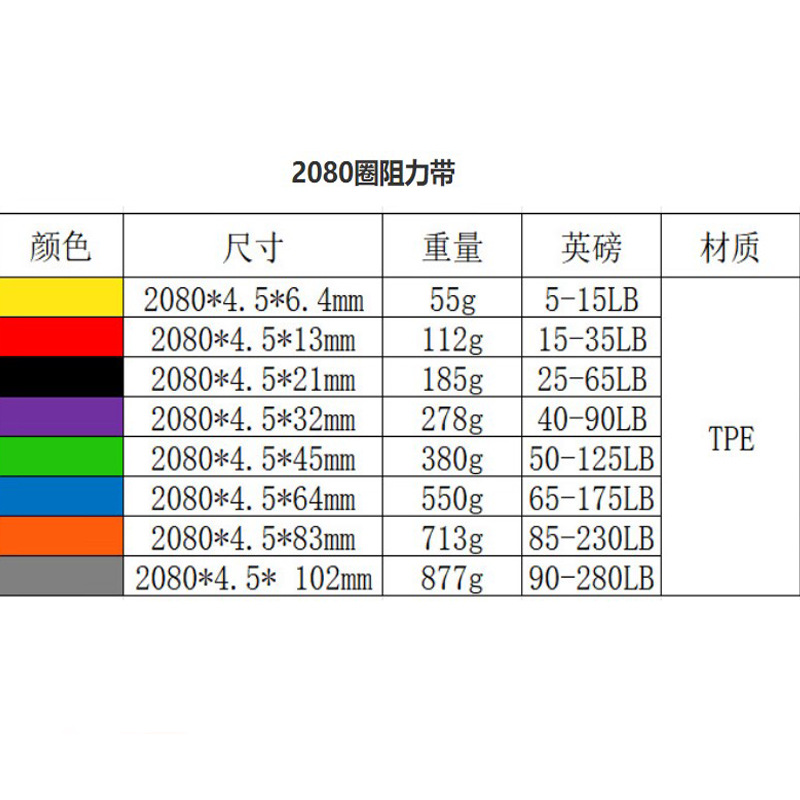 カラー イエロー5-15LBS,レッド15-35lbs,ブラック25-65lbs,紫40-90LBS,グリーン50-125LBS,ブルー65 * 175LBS,オレンジ85-230lbs