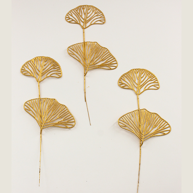 造花ユーカリの葉、造花イチョウの葉、三叉扇子、ホームウェディング装飾、ゴールド系の葉