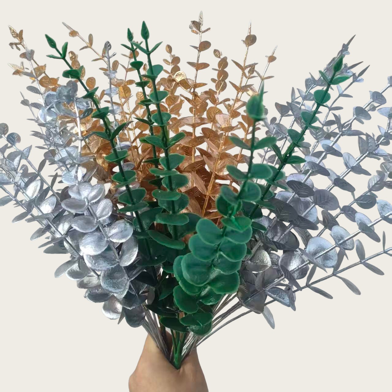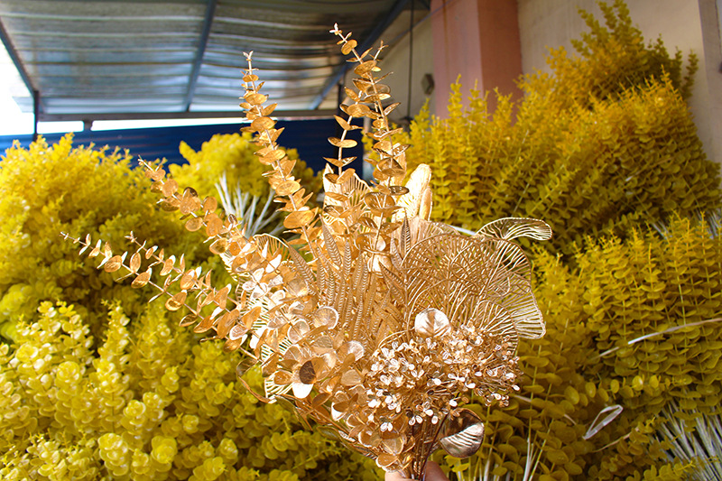 金色の造花、人工ユーカリ、小型ペルシャユーカリ、銅貨扇葉、元宝葉、楓の葉の卸売