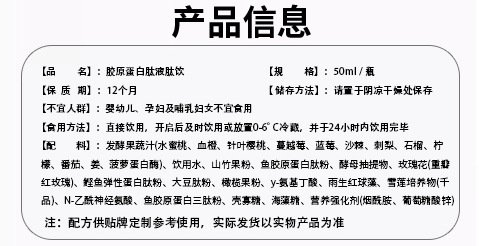 コラーゲンペプチド飲料ヒアルロン酸活性ペプチド小分子ヒアルロン酸ナトリウムコラーゲンペプチド経口液