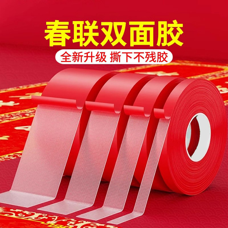 春節用両面テープ 高粘度で剥がしやすい 跡が残らないメッシュ両面テープ 春節のお祝い用 貼り付け式春節用対聯 カーペット用布地テープ