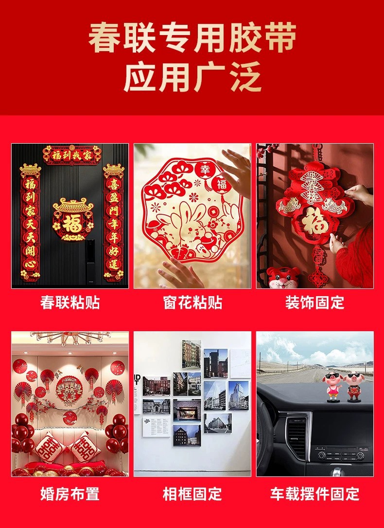 春節用両面テープ 強力粘着 祝福文字対聯専用 跡が残らない両面テープ 新年 結婚式 装飾 布製春節テープ