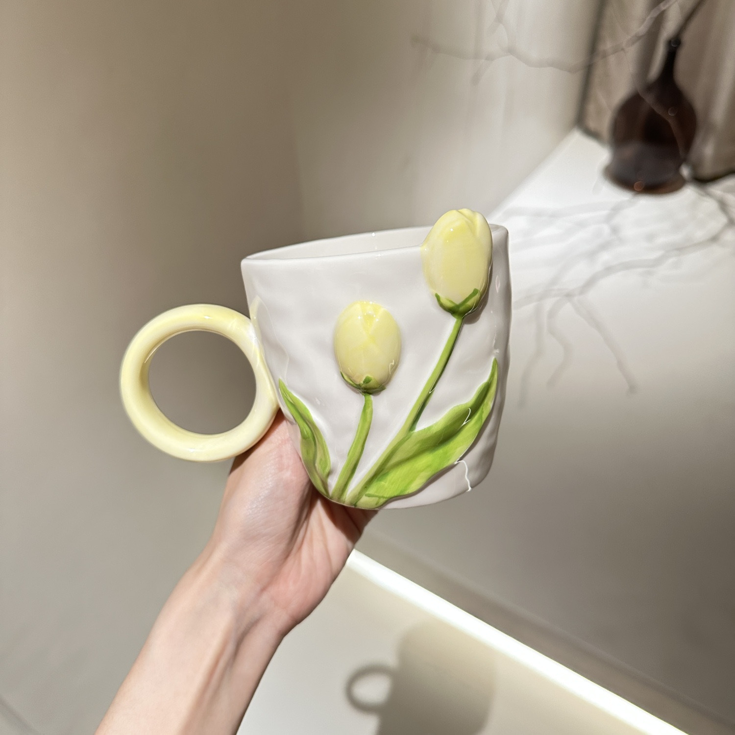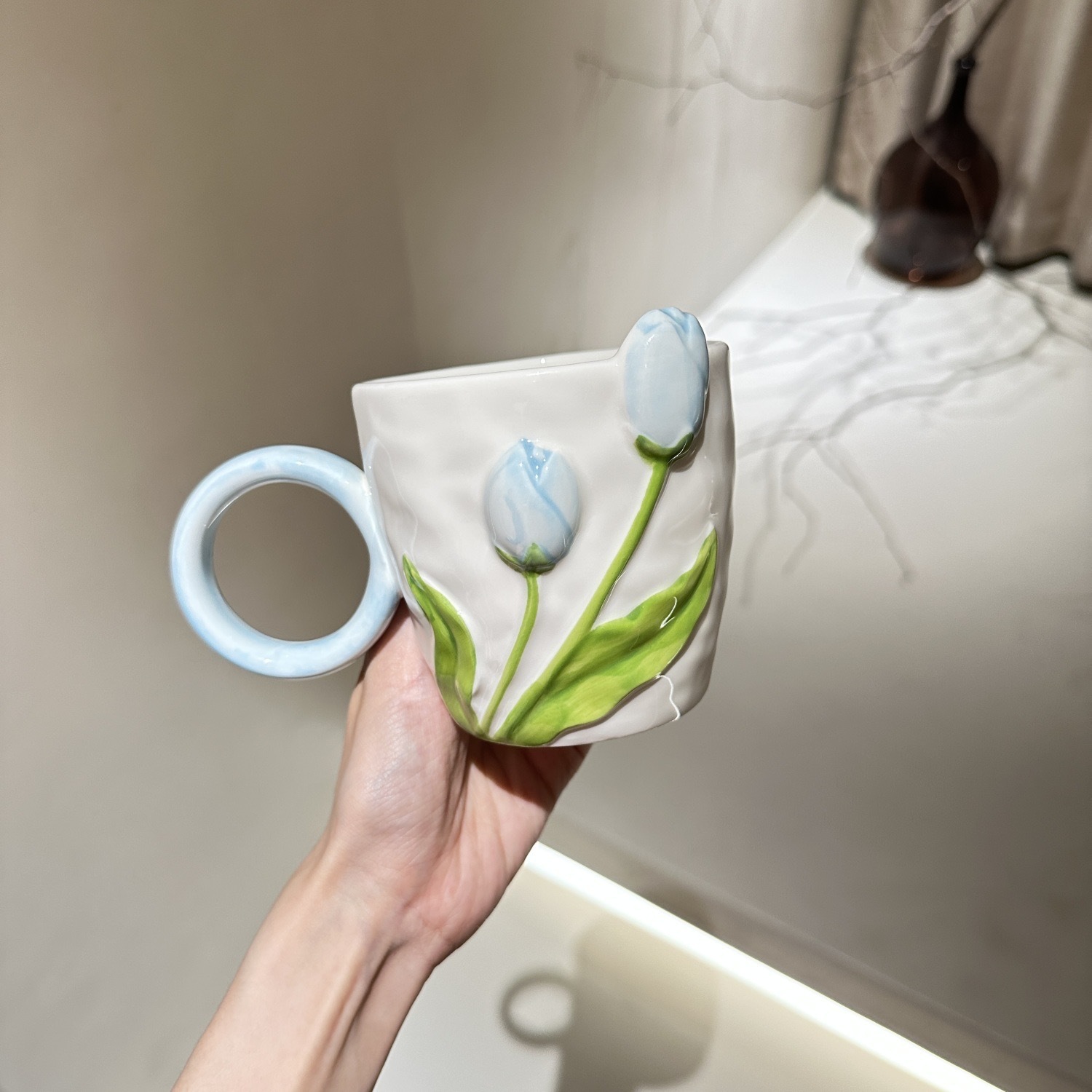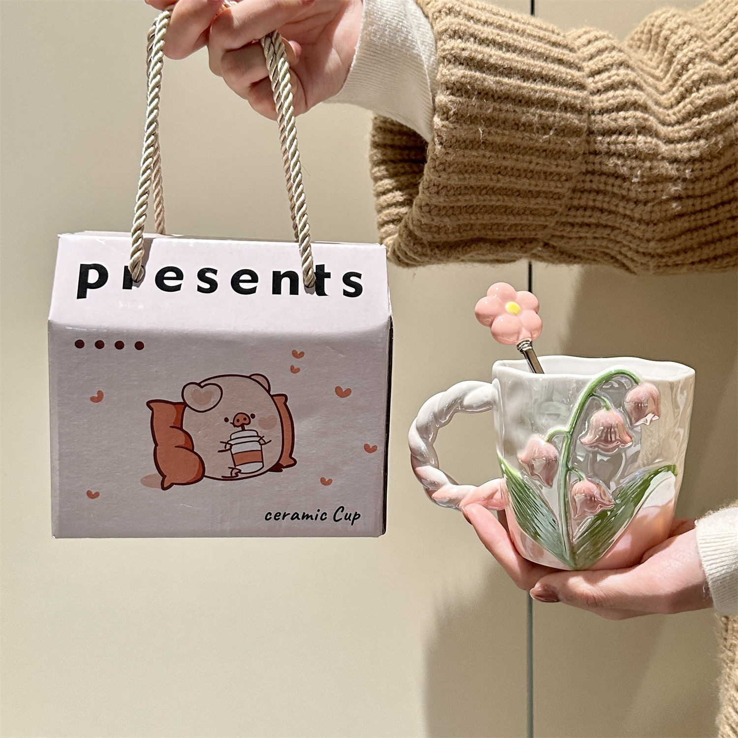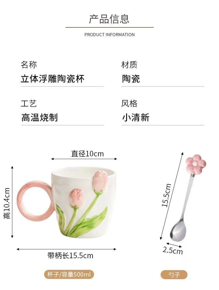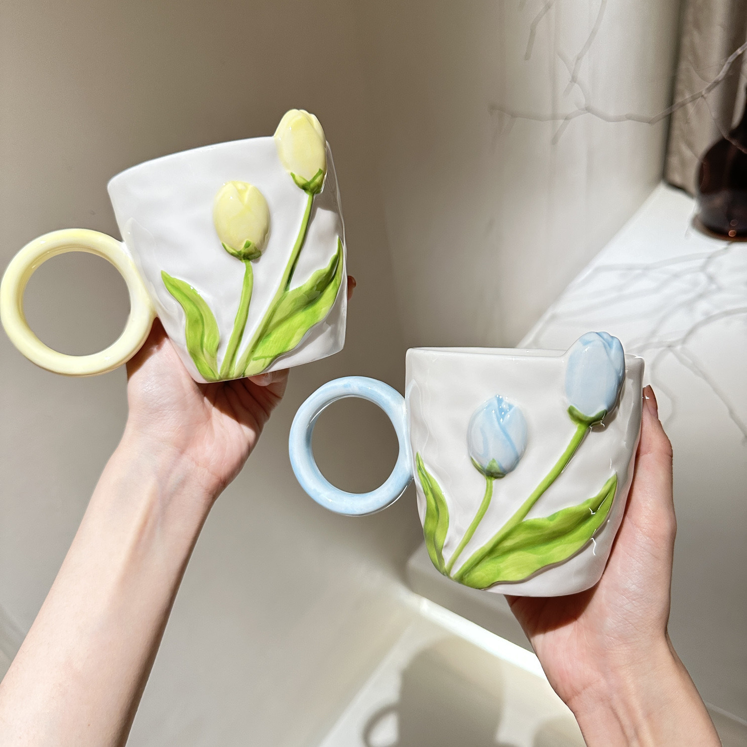 クリエイティブ立体花セラミックマグカップ寮カップ学生朝食カップ家庭用カップルカッププレゼント